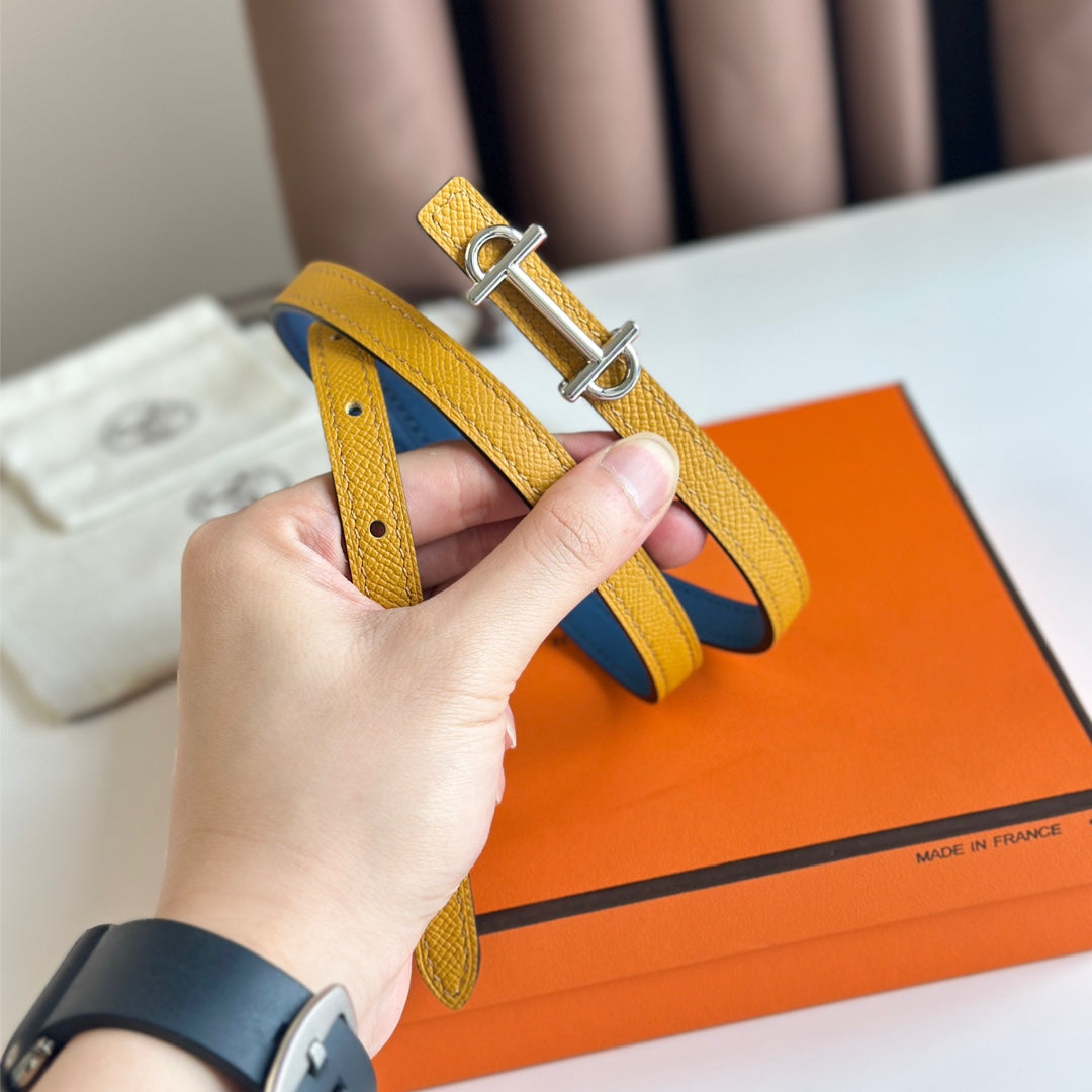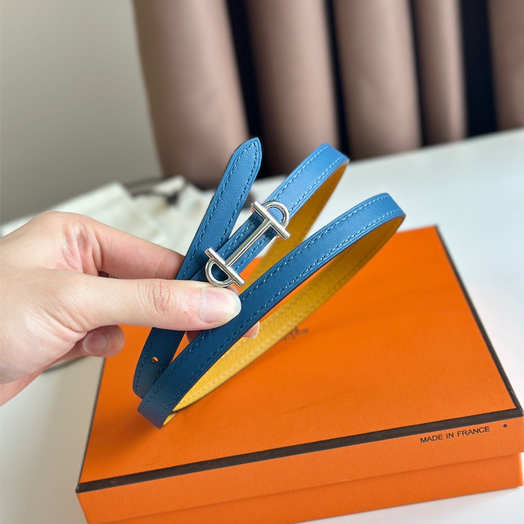 HM GAMMA BUCKLE & REVERSIBLE GOLDEN AND BLUE LEATHER STRAP 13MM SILVER HARDWARE