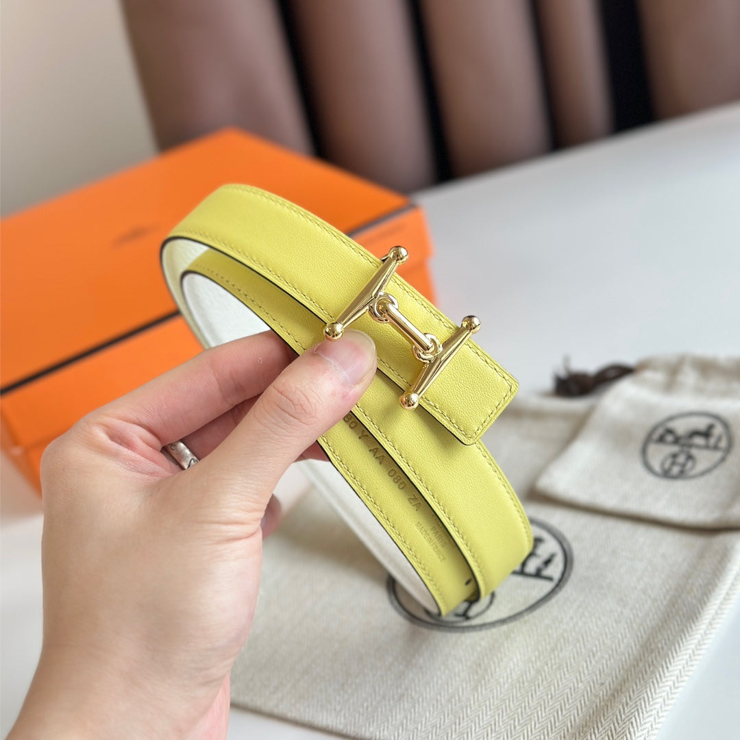 HM Gold Mors H buckle & Reversible 24 mm belt Yellow Beige leather 125368