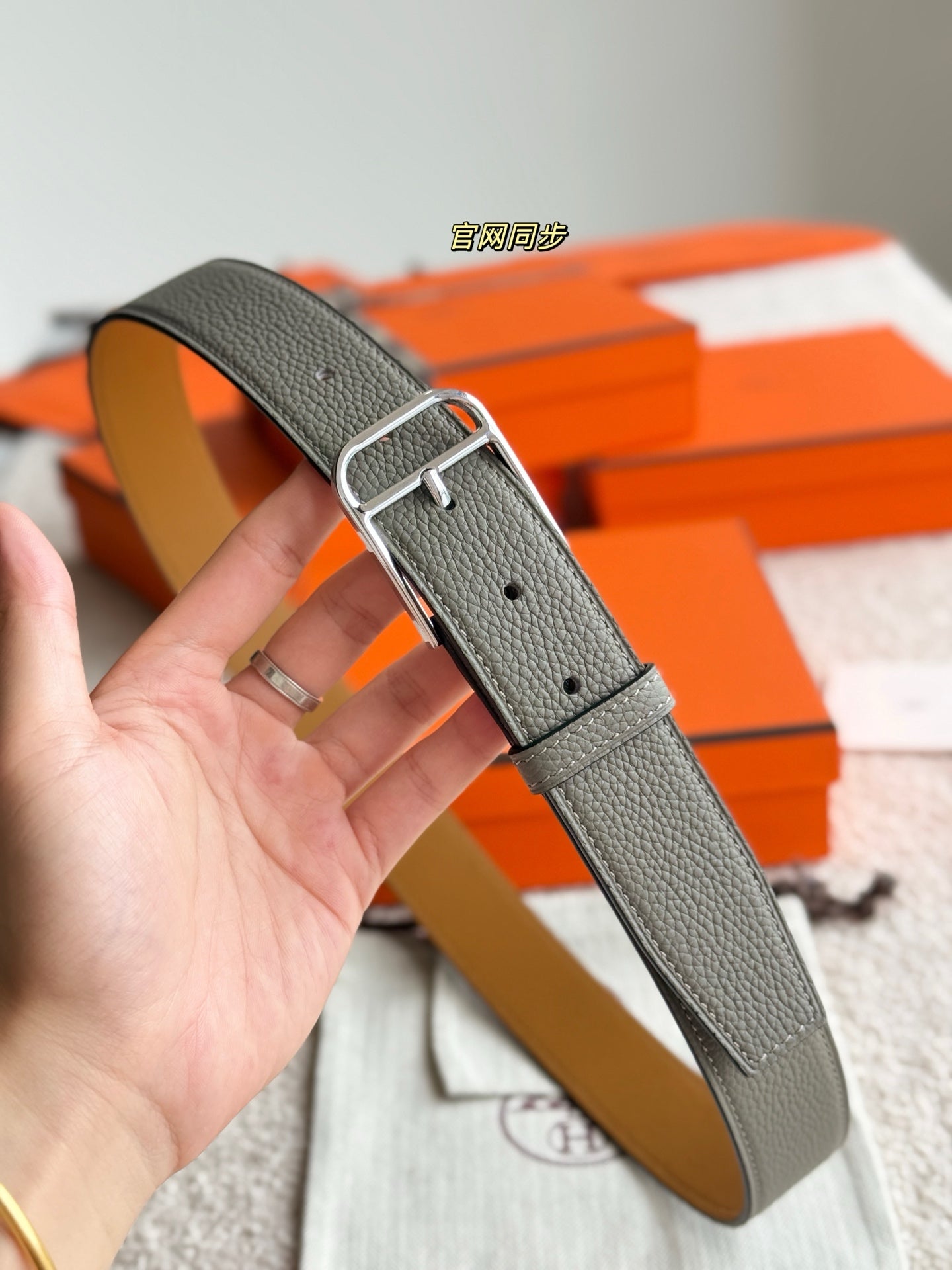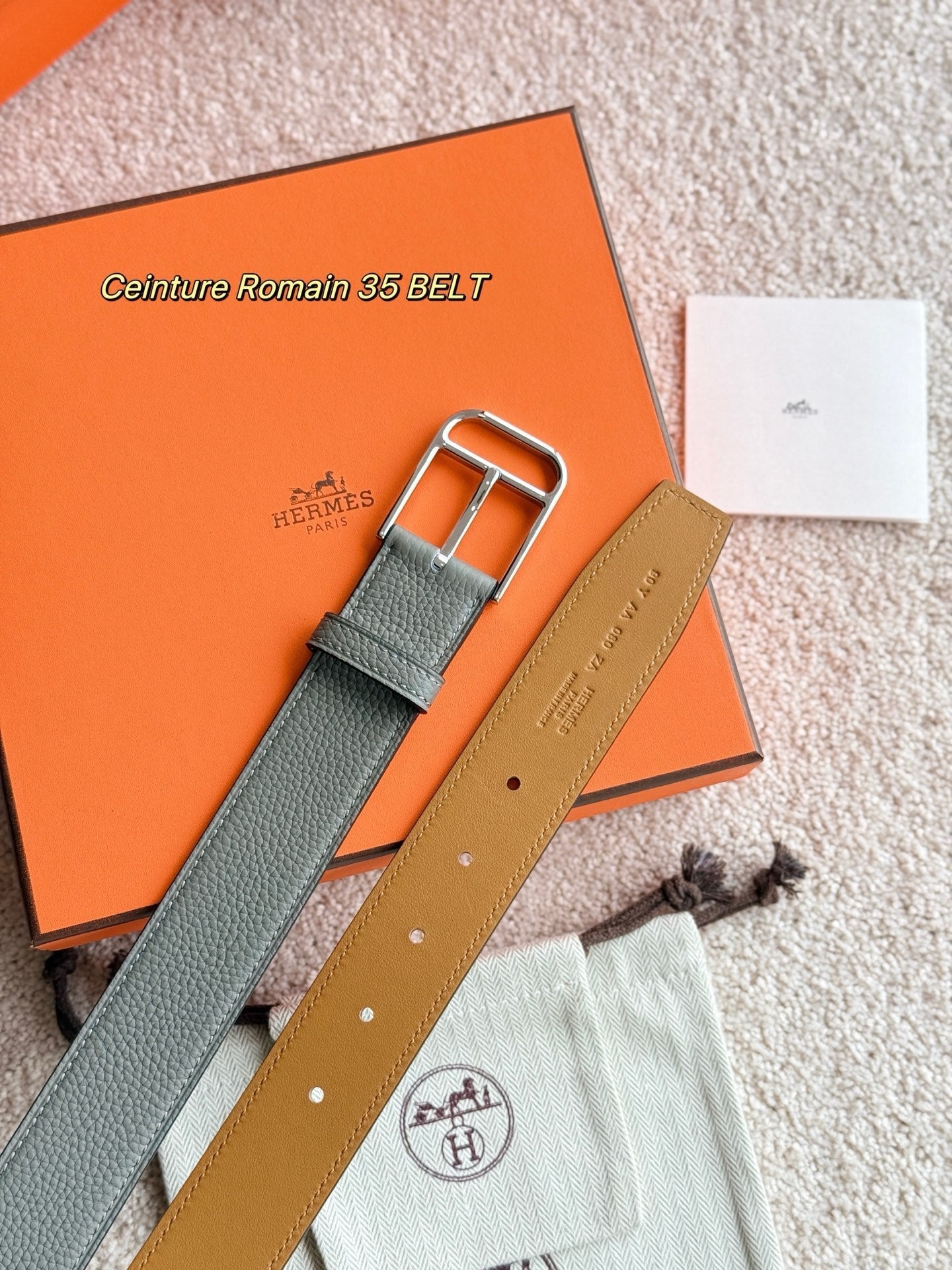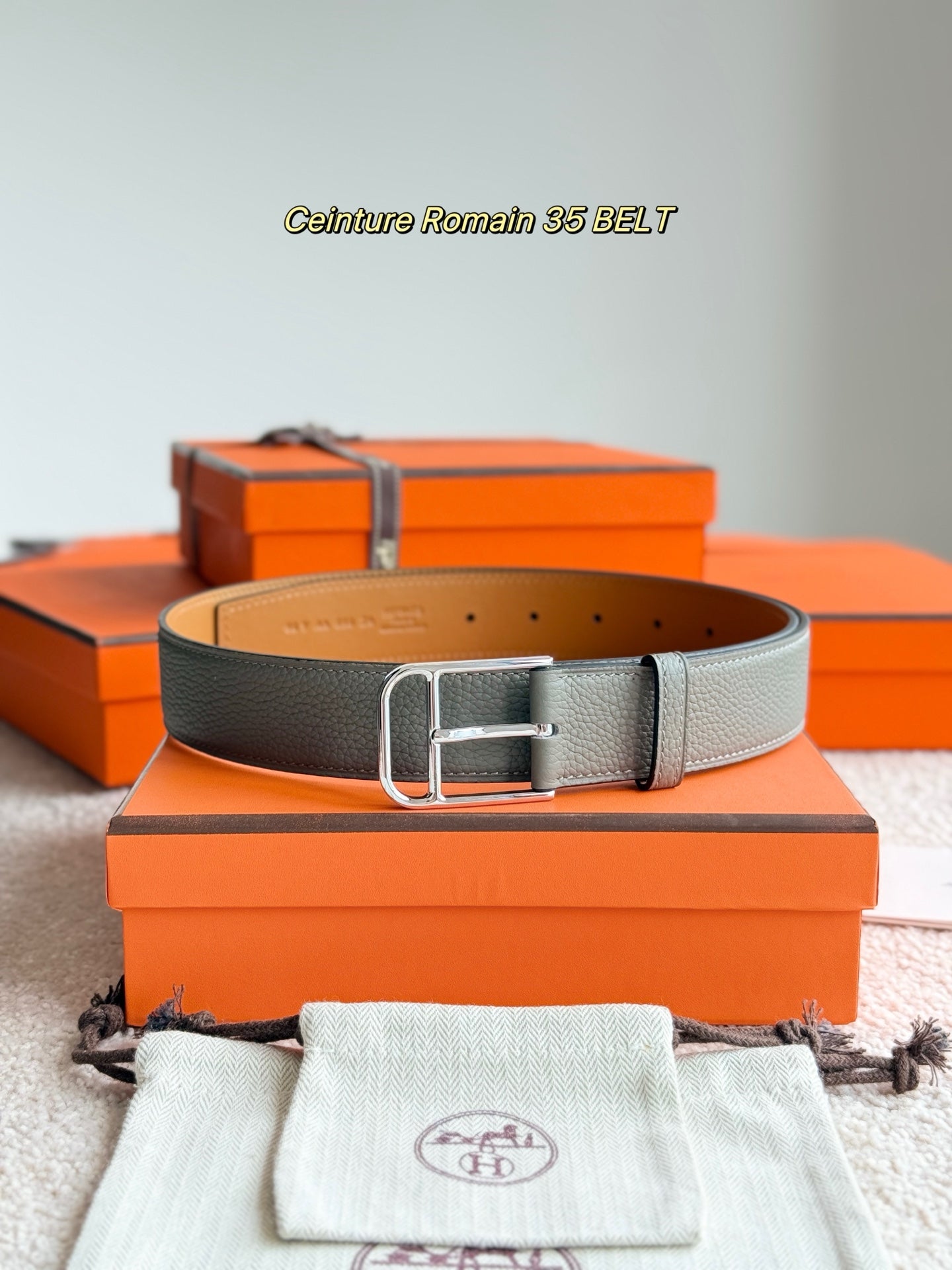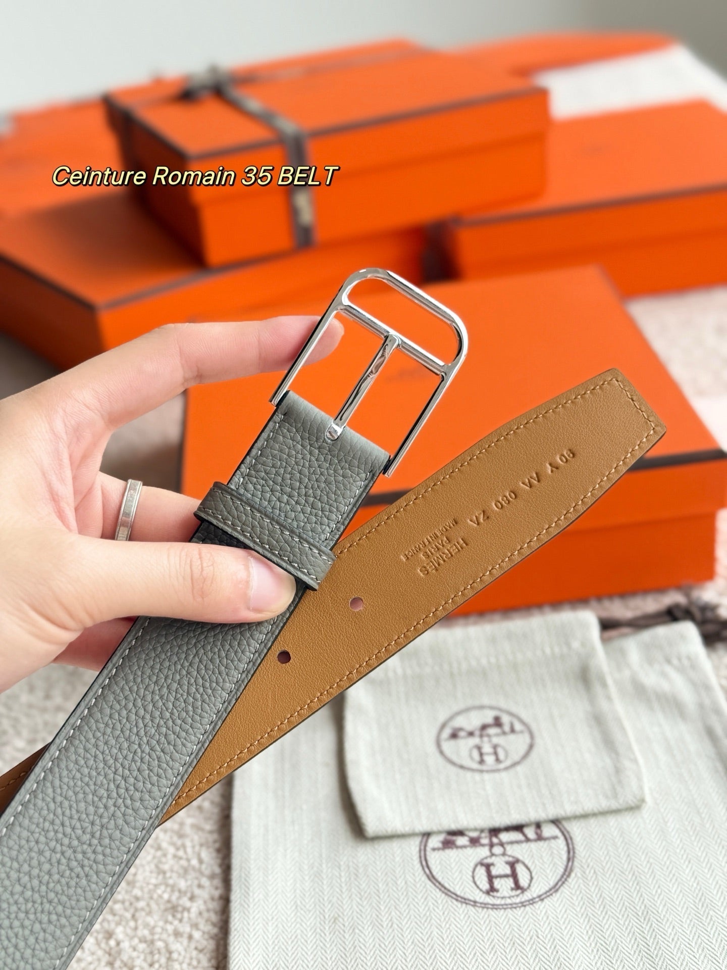 HM Silver 35mm Romain Belt Meyer Gray Leather 188402