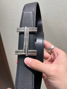 HM TRAVERSE BELT BUCKLE & REVERSIBLE BLACK LEATHER STRAP 38 MM SILVER HARDWARE