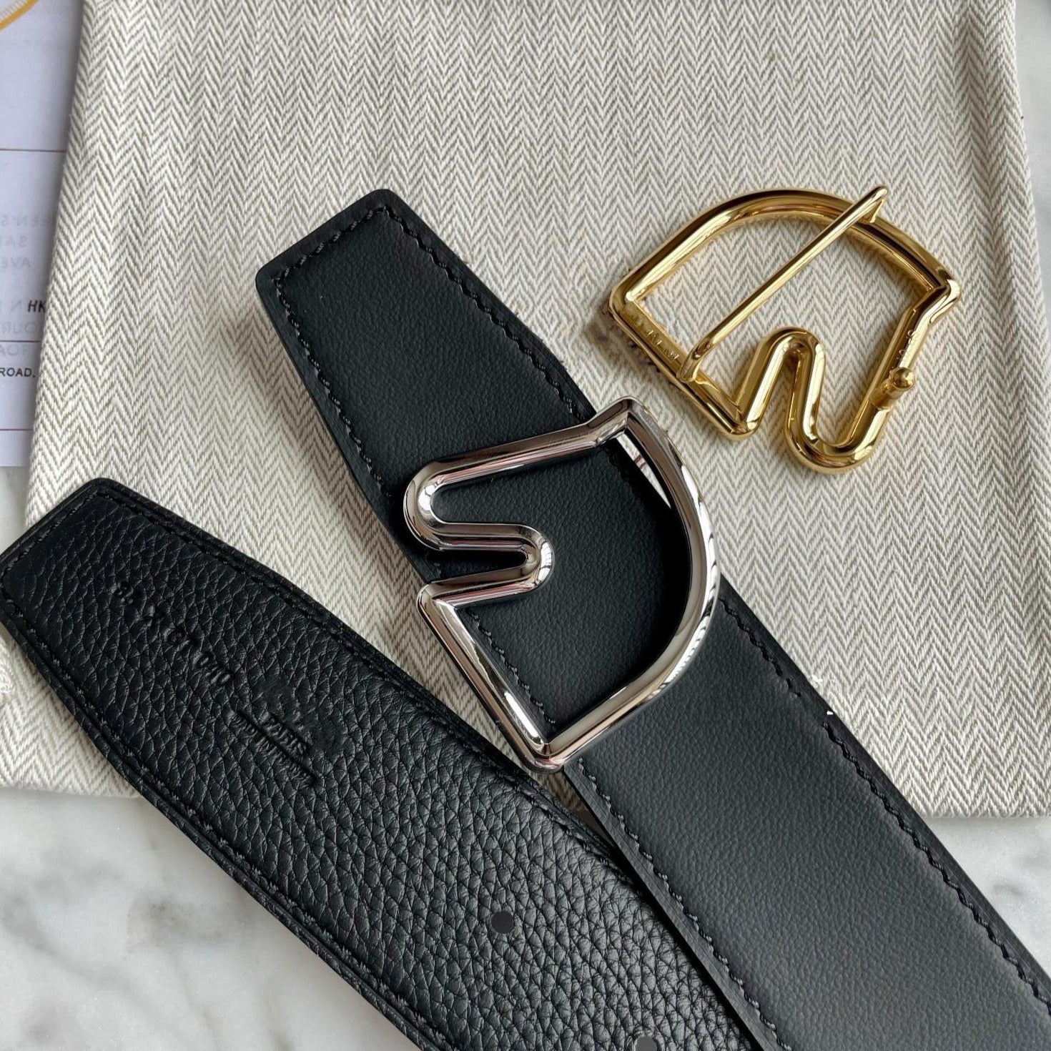 H BELT HORSE BUCKLE BLACK LEATHER REVERSIBLE 3.8CM