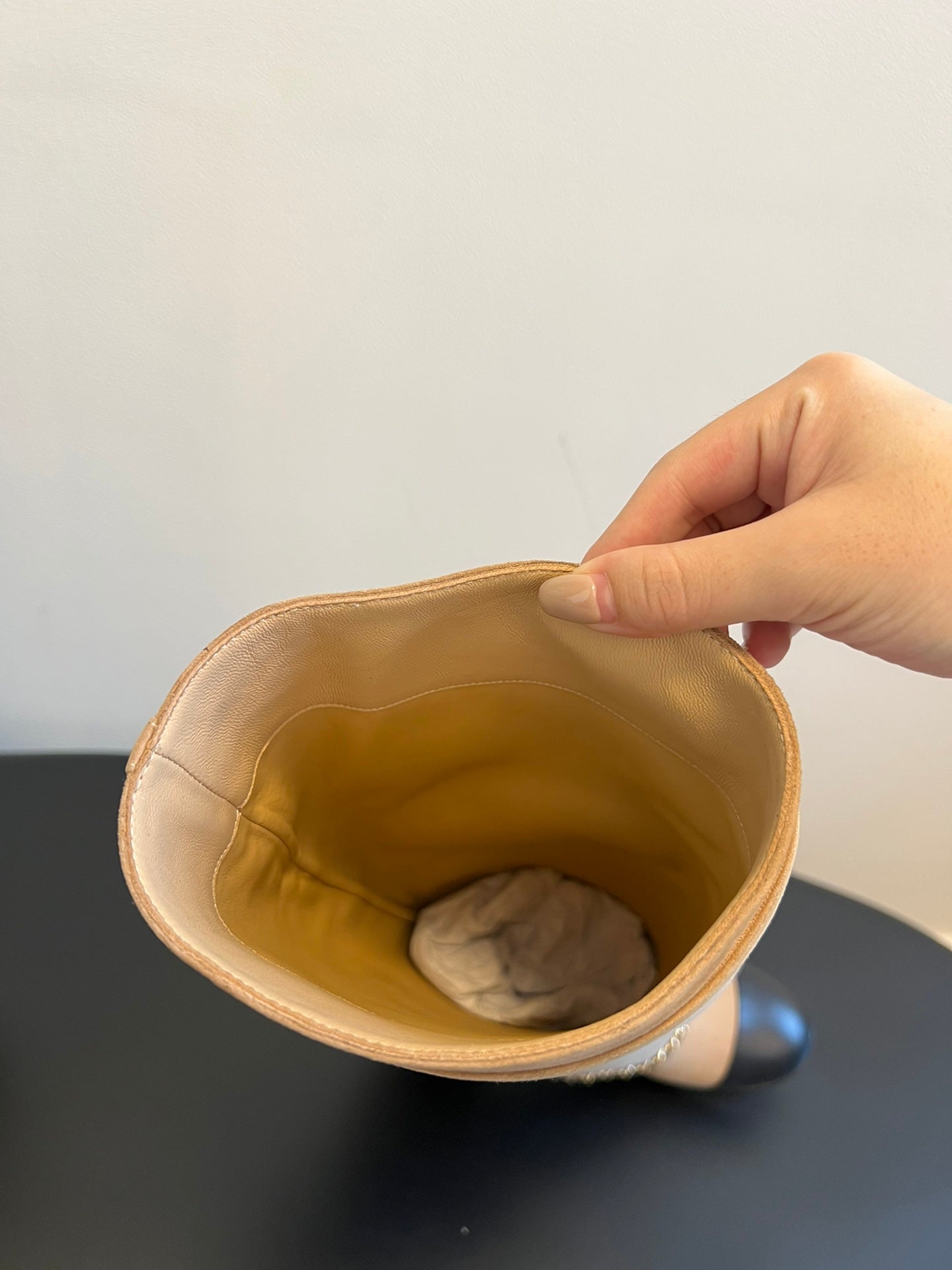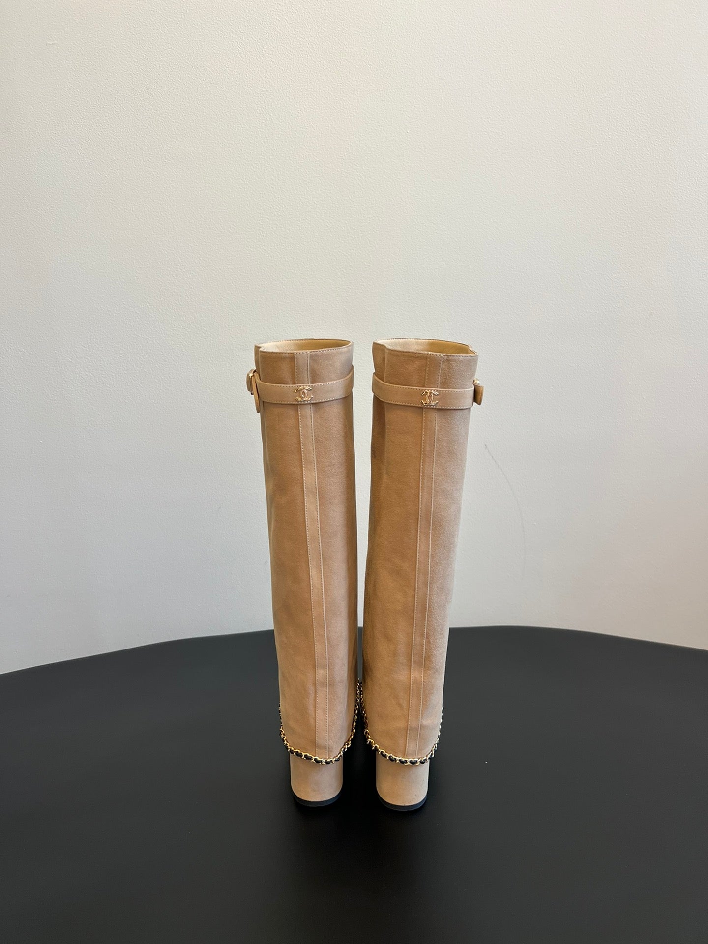 CC Hight Boots Dark Beige With Chain Suede And Cowhide 944969