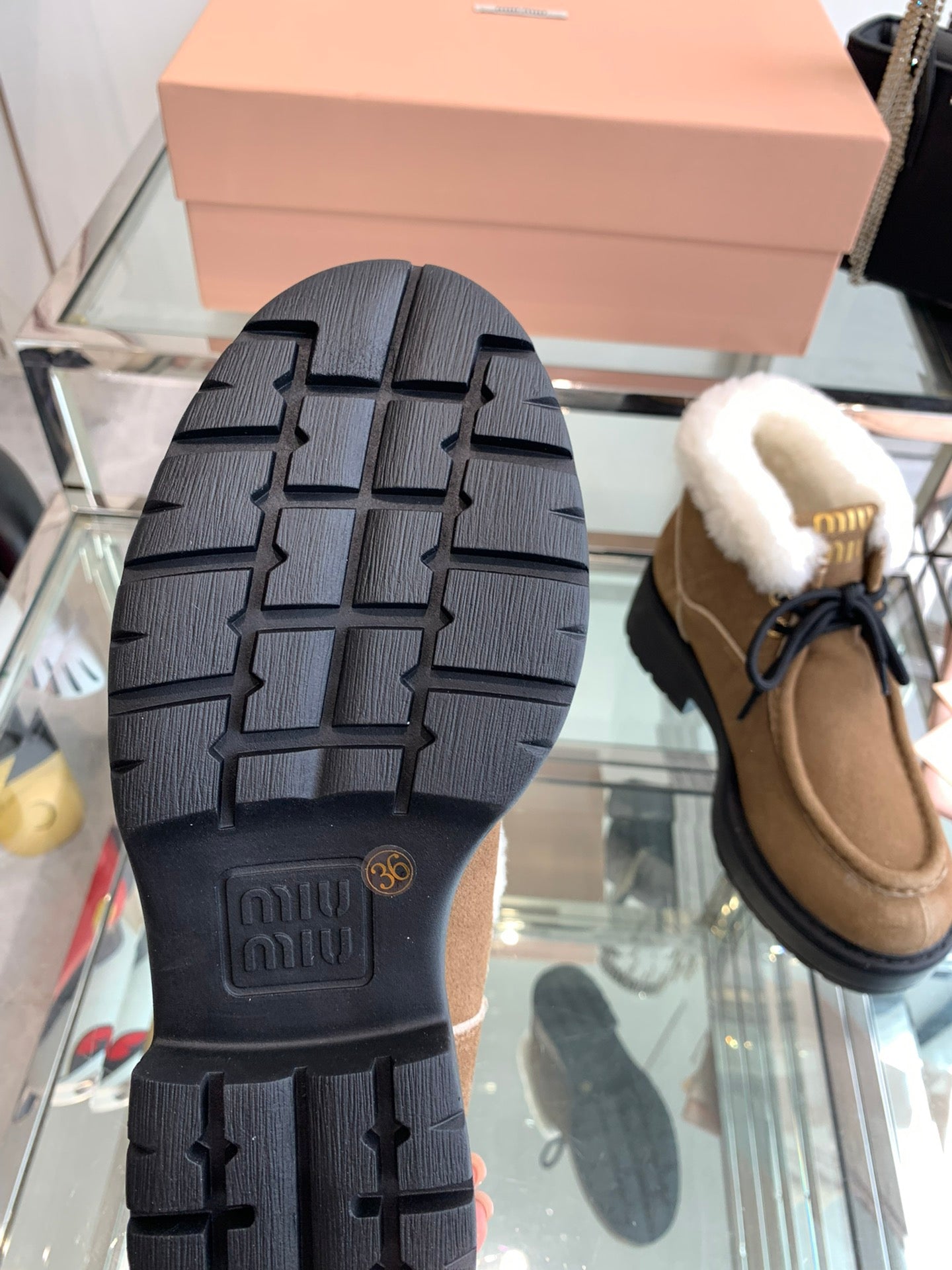Miu Ankle Boots Vintage Brown Open-Hemmed Cowhide