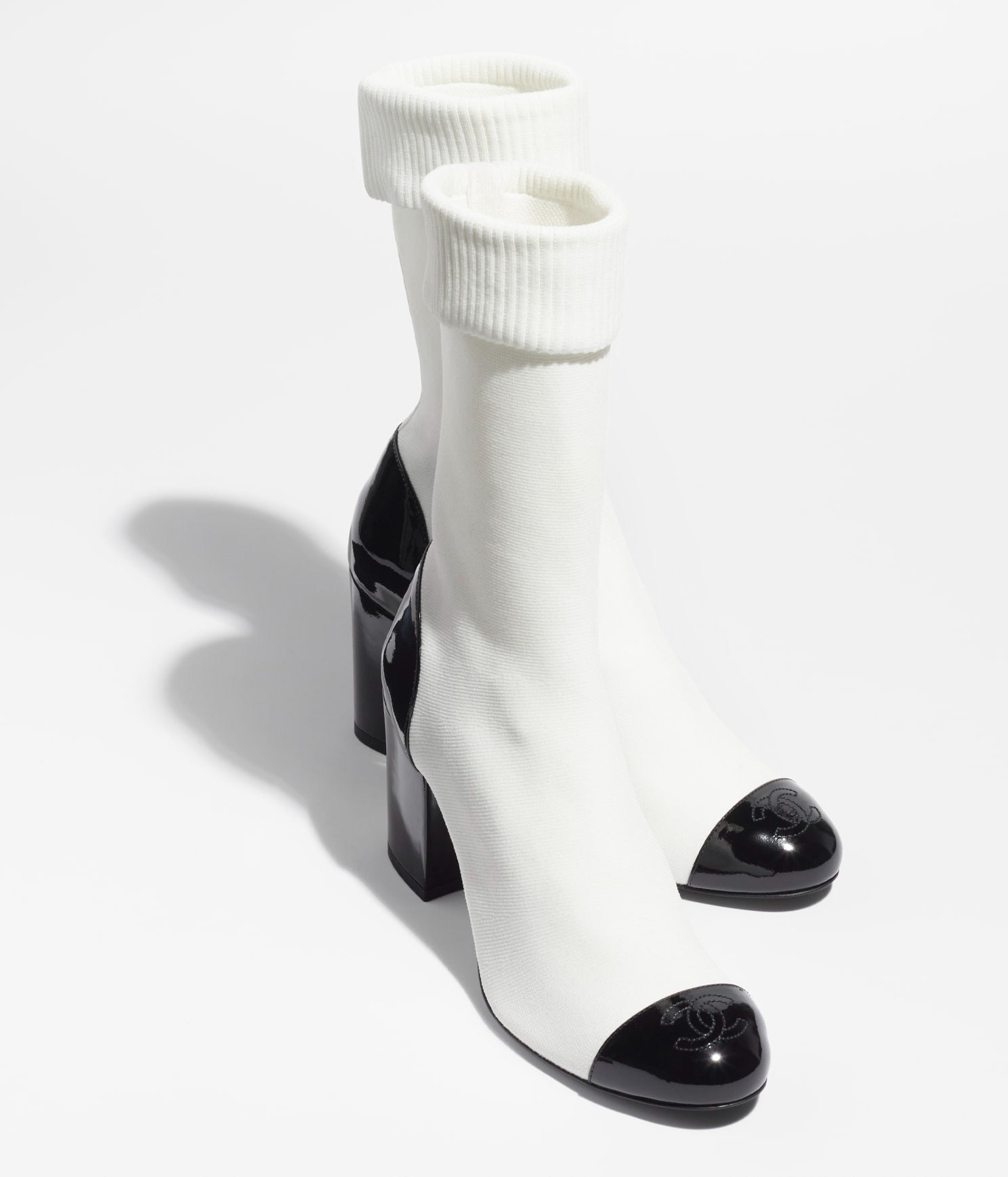 short boots white black knit patent calfskin