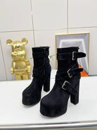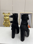 SL ANKLE BUCKLE BOOT PLATFORM BLACK SUEDE