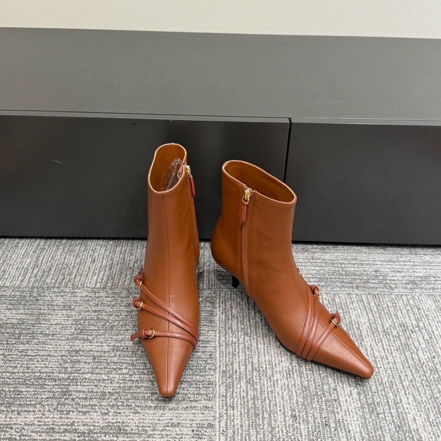 HM short boots kelly buckle black sheepskin