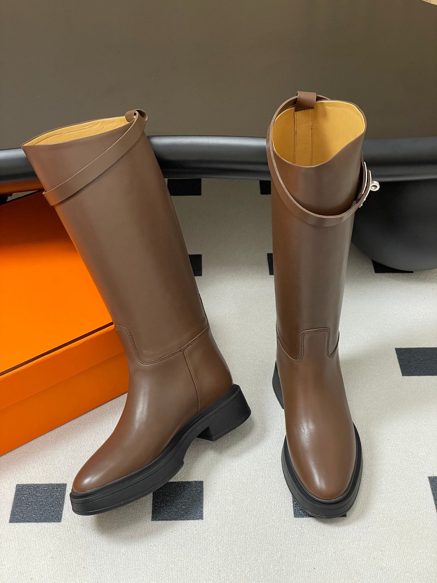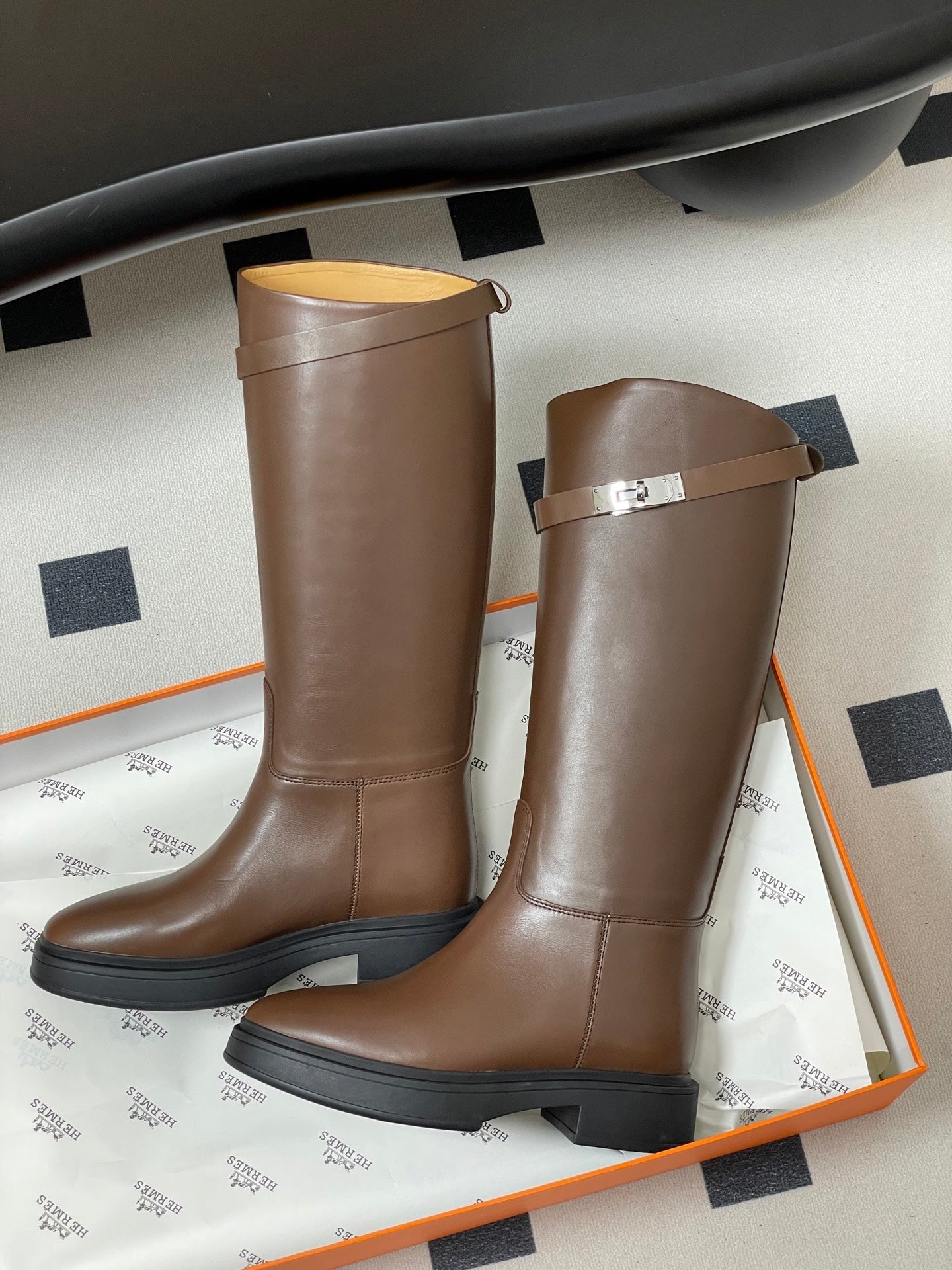 HM Jumping Boots Dark Brown Kelly Buckle Cowhide Leather