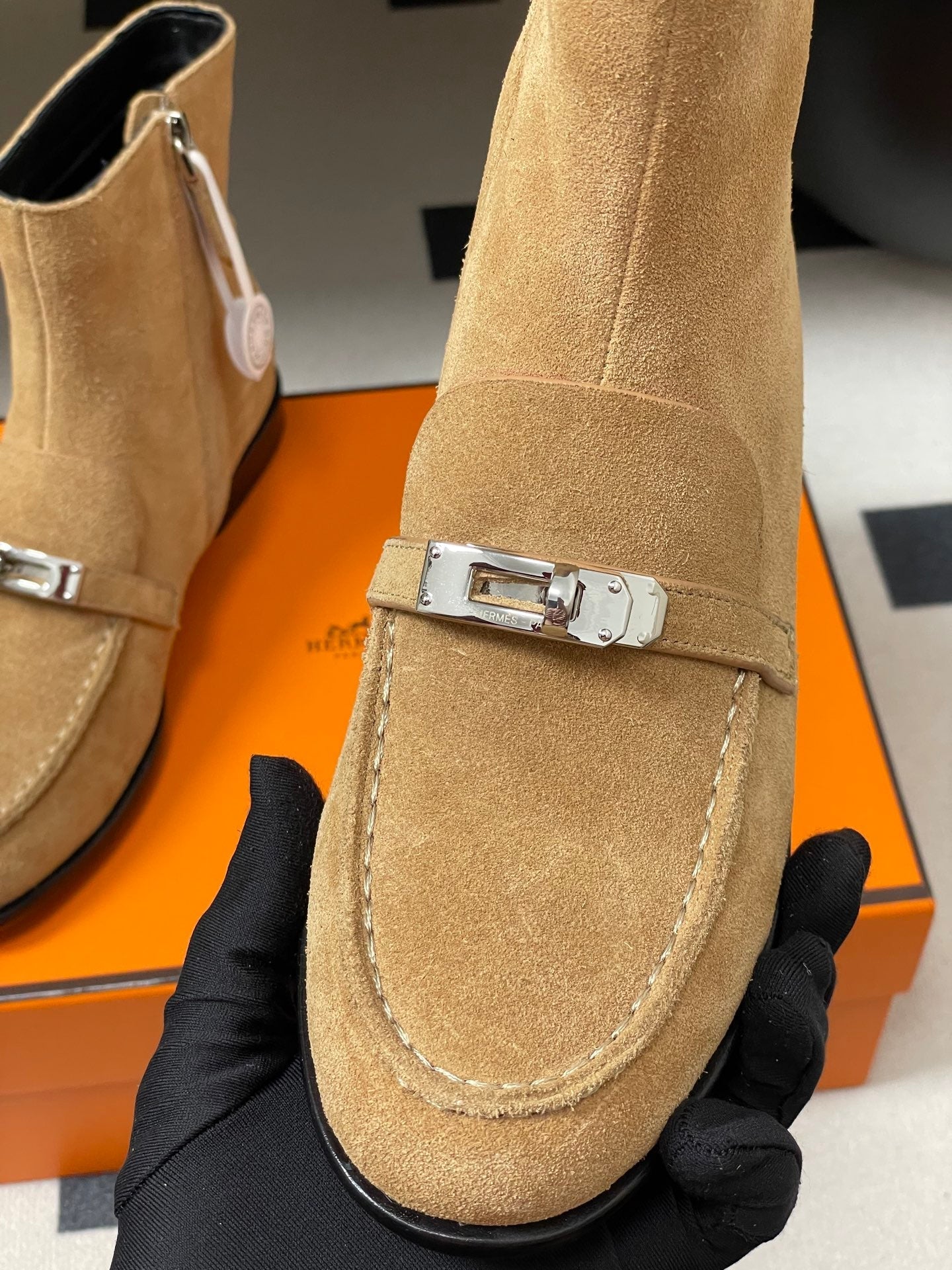 HM short boots kelly buckle light beige suede