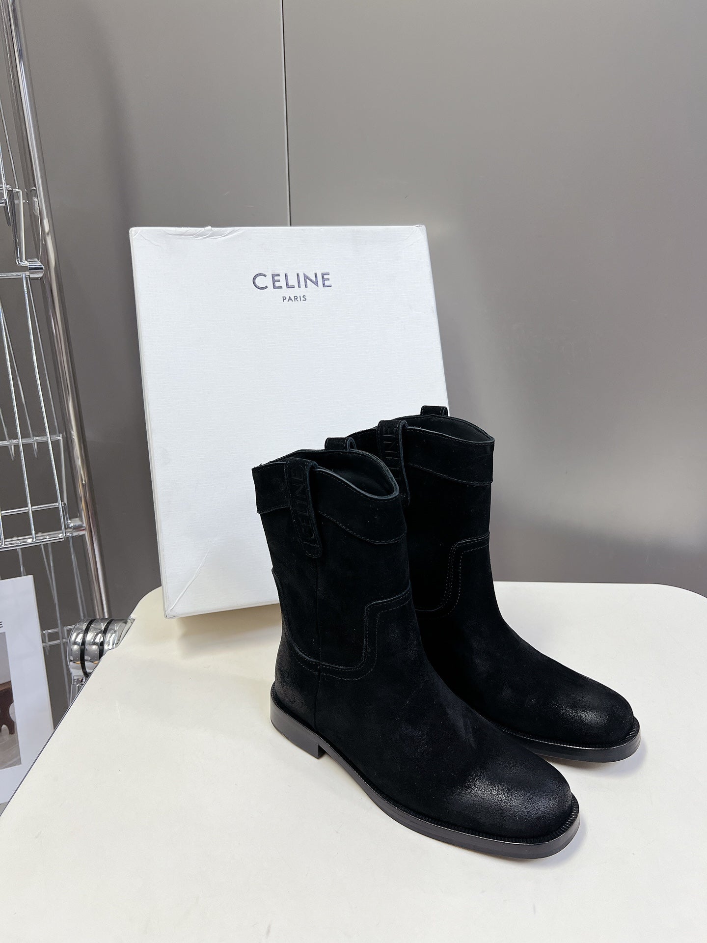 CELINE 25 cowboy boots black suede 434414