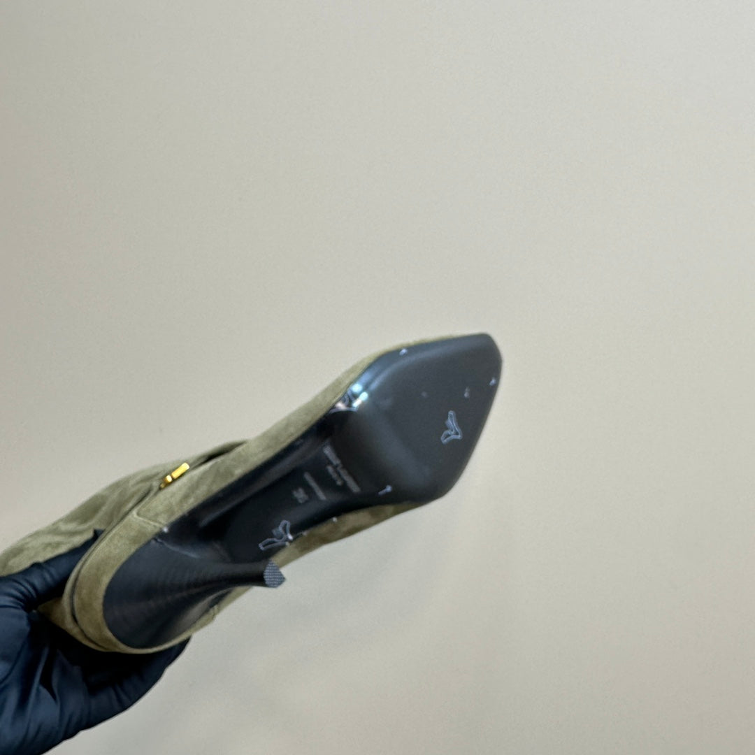 Miu Ankle Boots Khaki Brown Open-Hemmed Cowhide
