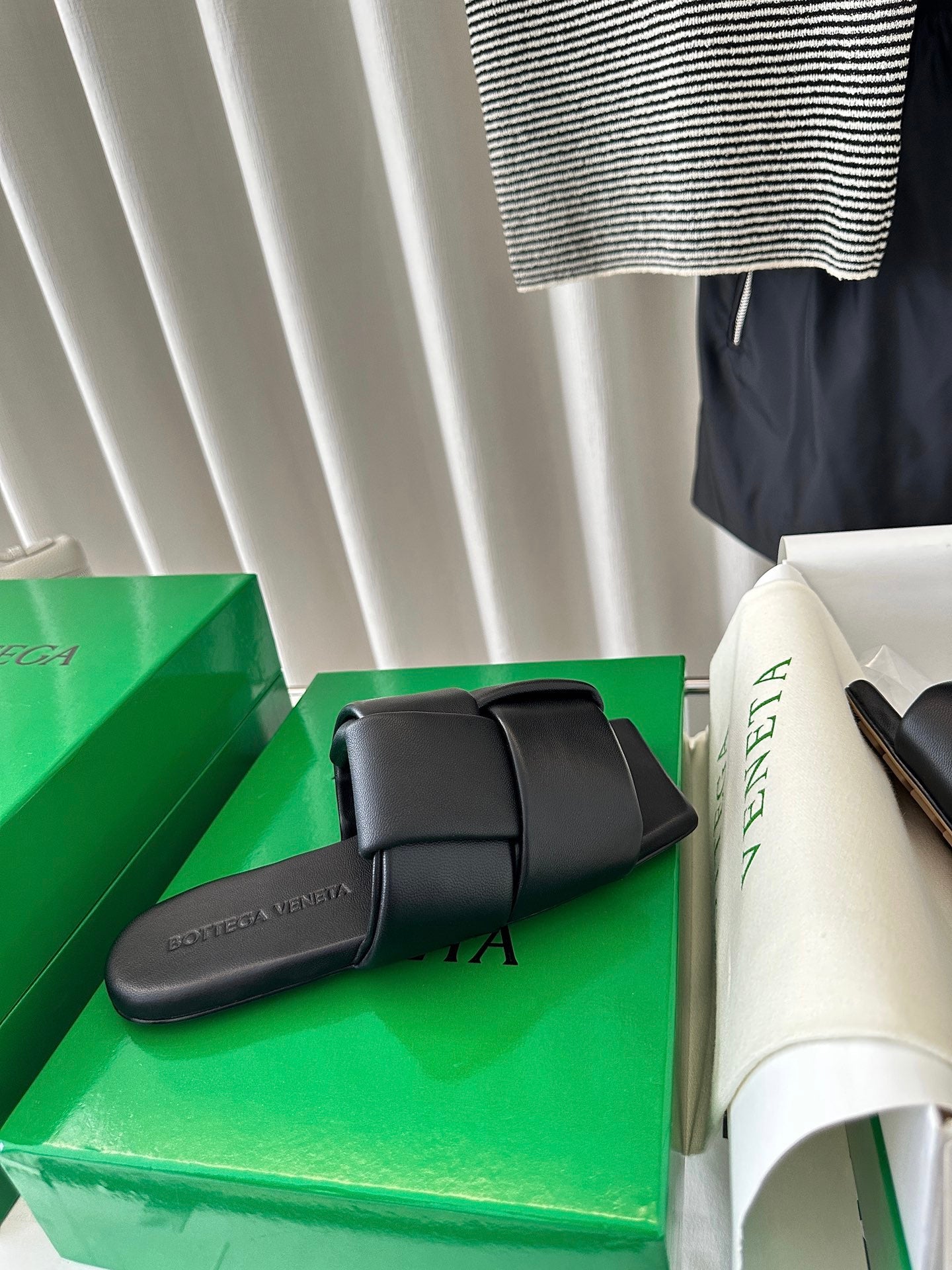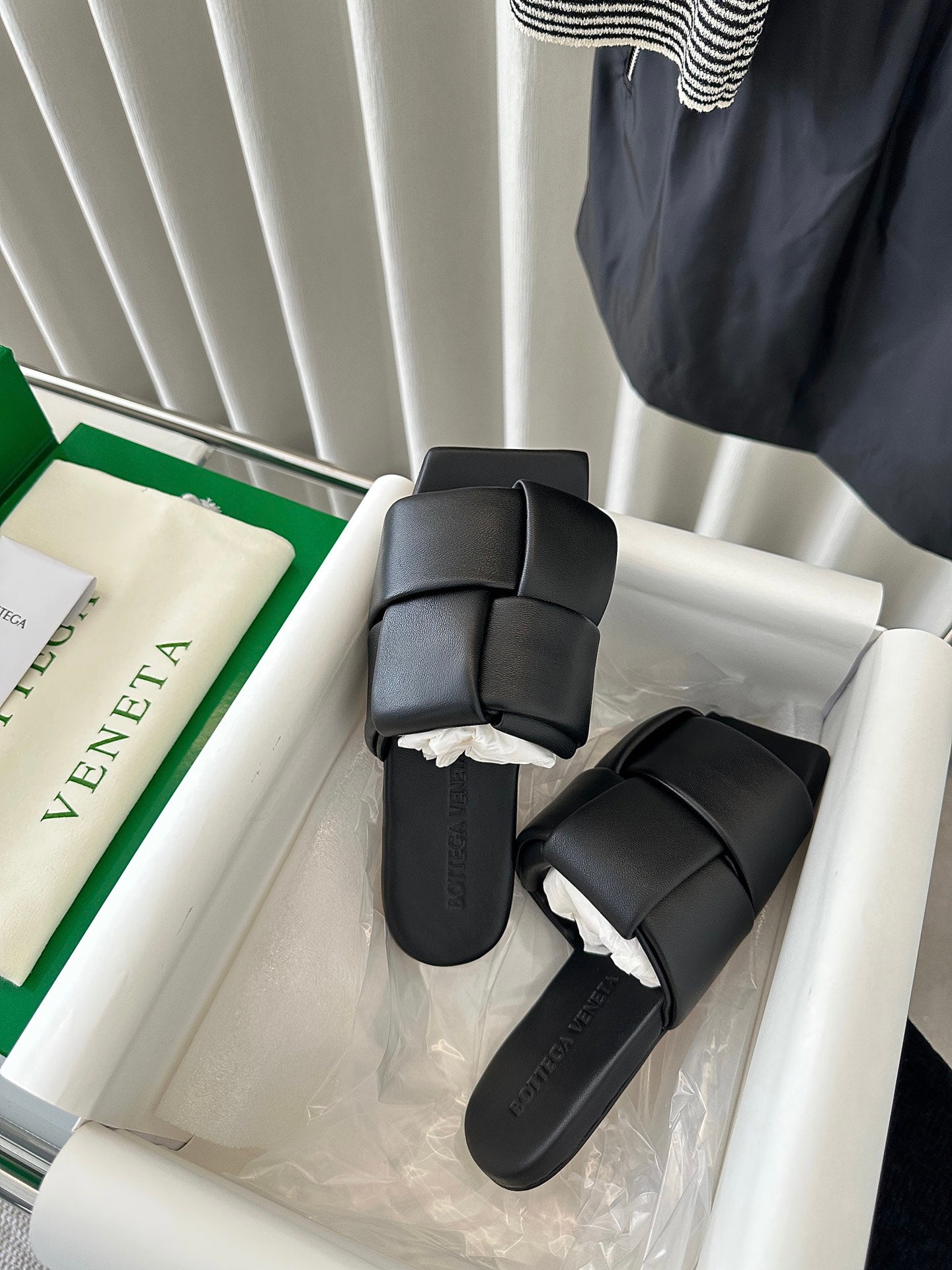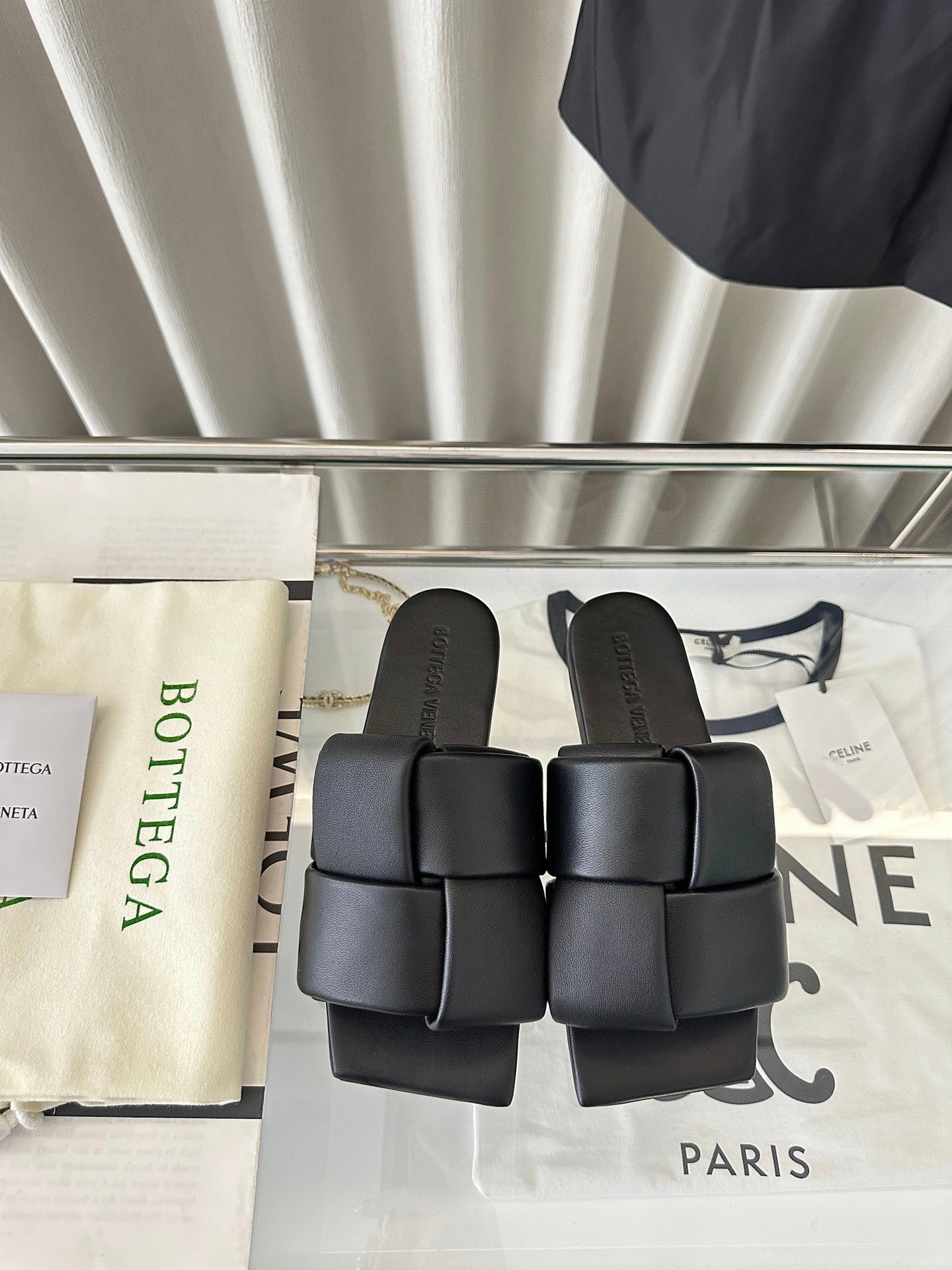 patch mule flat black lambskin