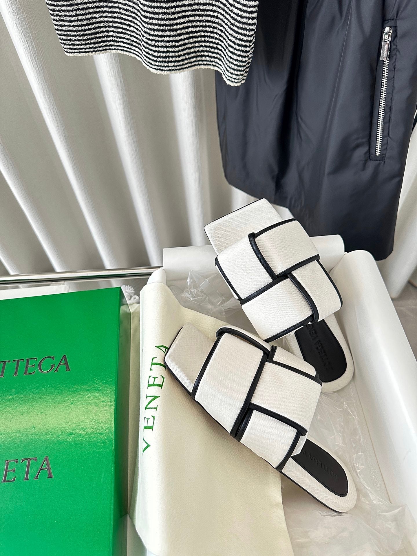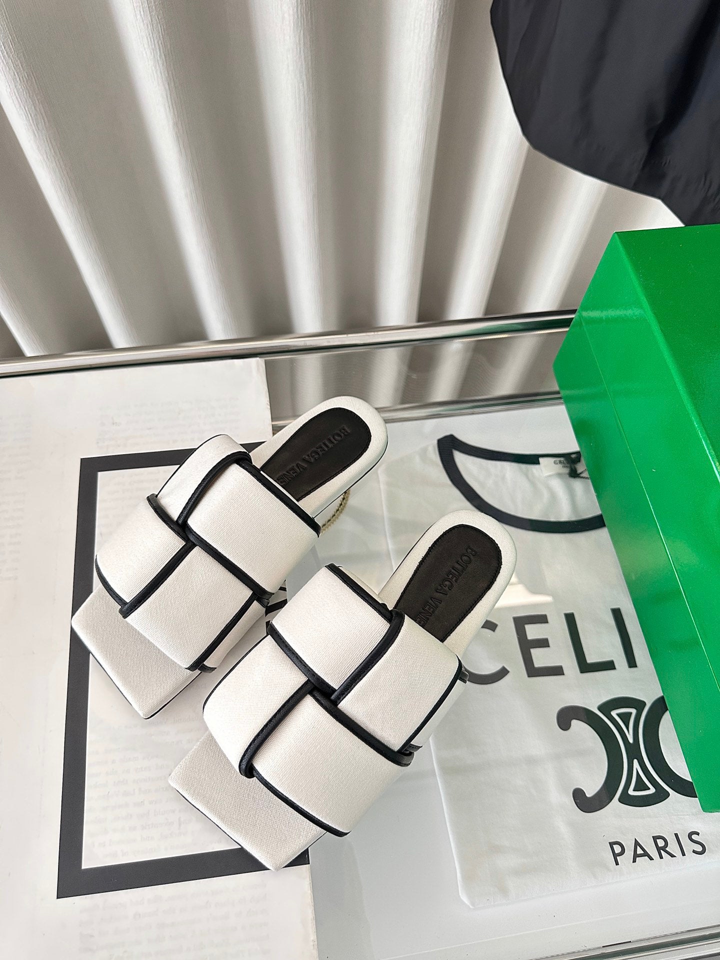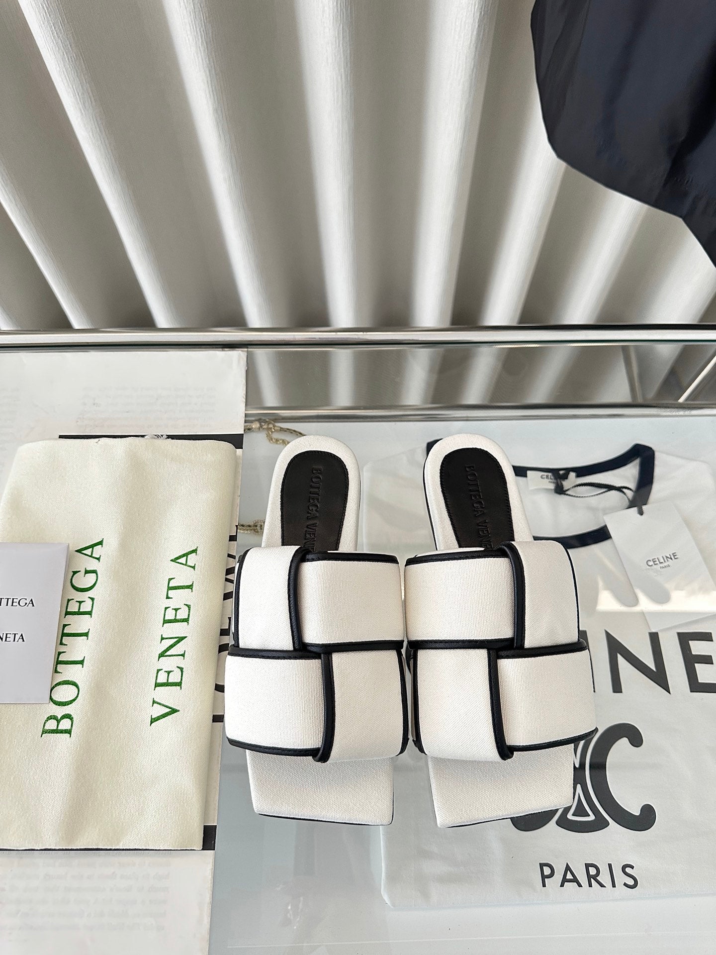 patch mule flat white black cotton lambskin