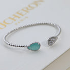 BOHEME AQUAMARINE DIAMOND SILVER OPEN BRACELET