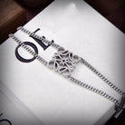 PAVED ANAGRAM DOUBLE CHAIN SILVER BRACELET