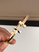 T1 WIDE DIAMOND HINGED BANGLE PINK GOLD