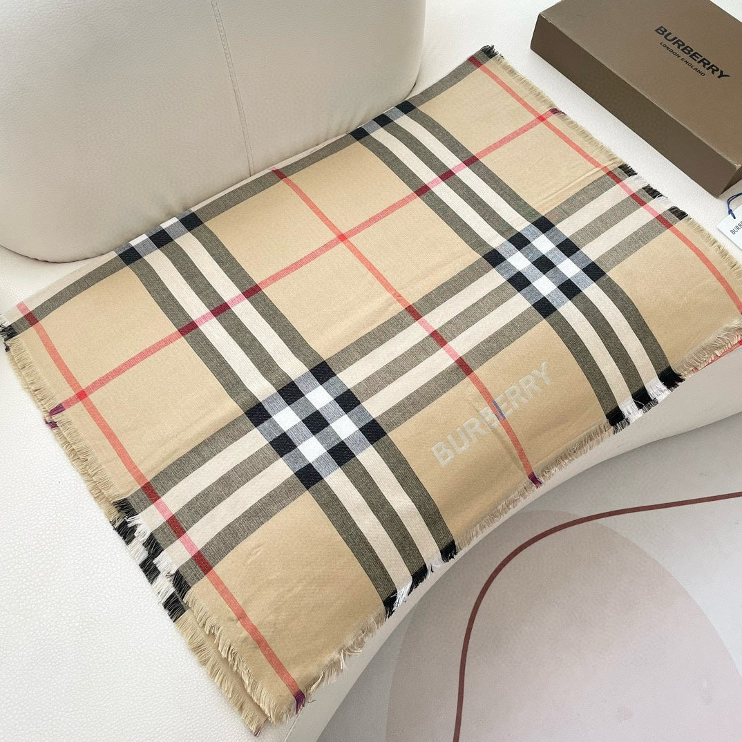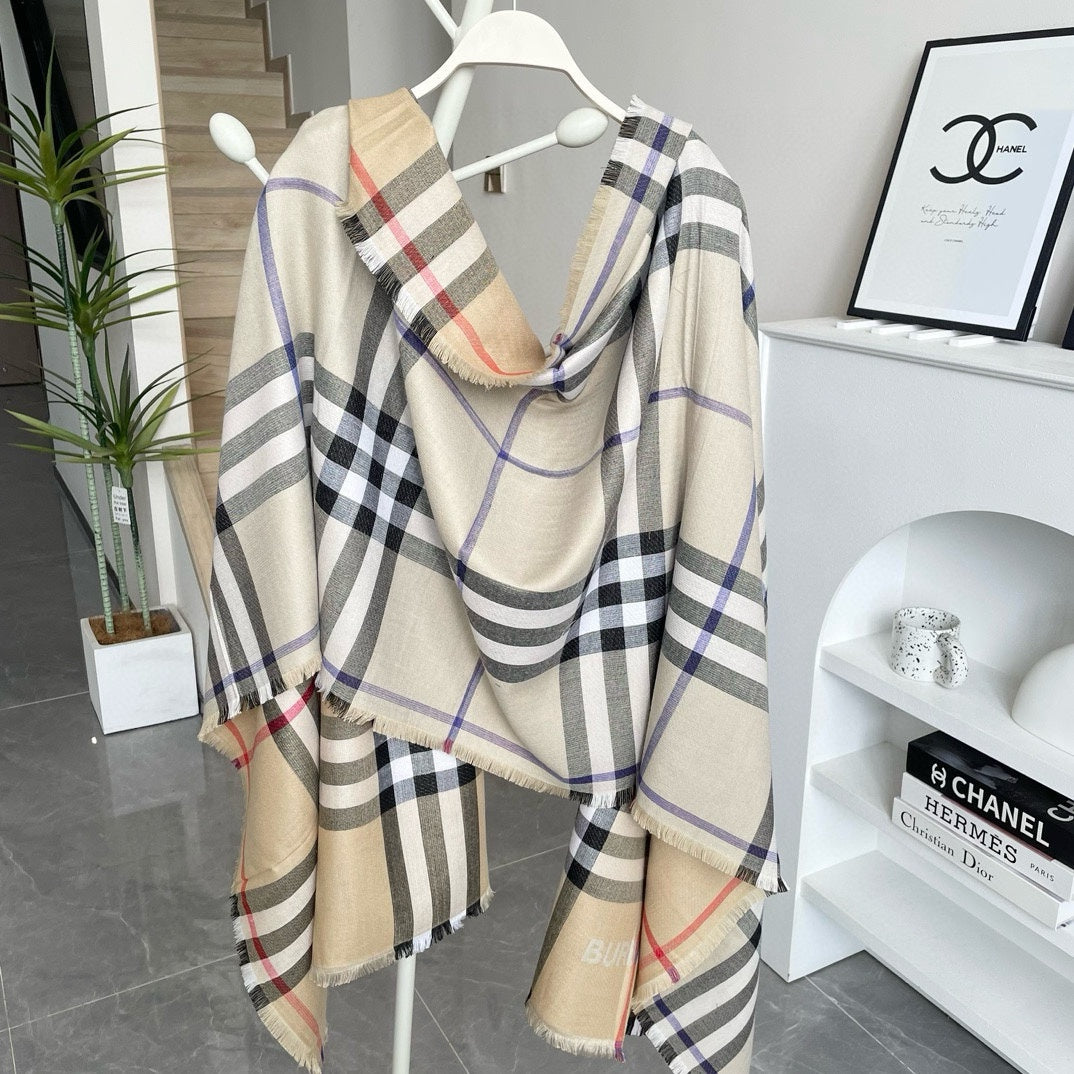 REVERSIBLE CHECK 140 CM WOOL SILK SCARF CAMEL BEIGE 408964