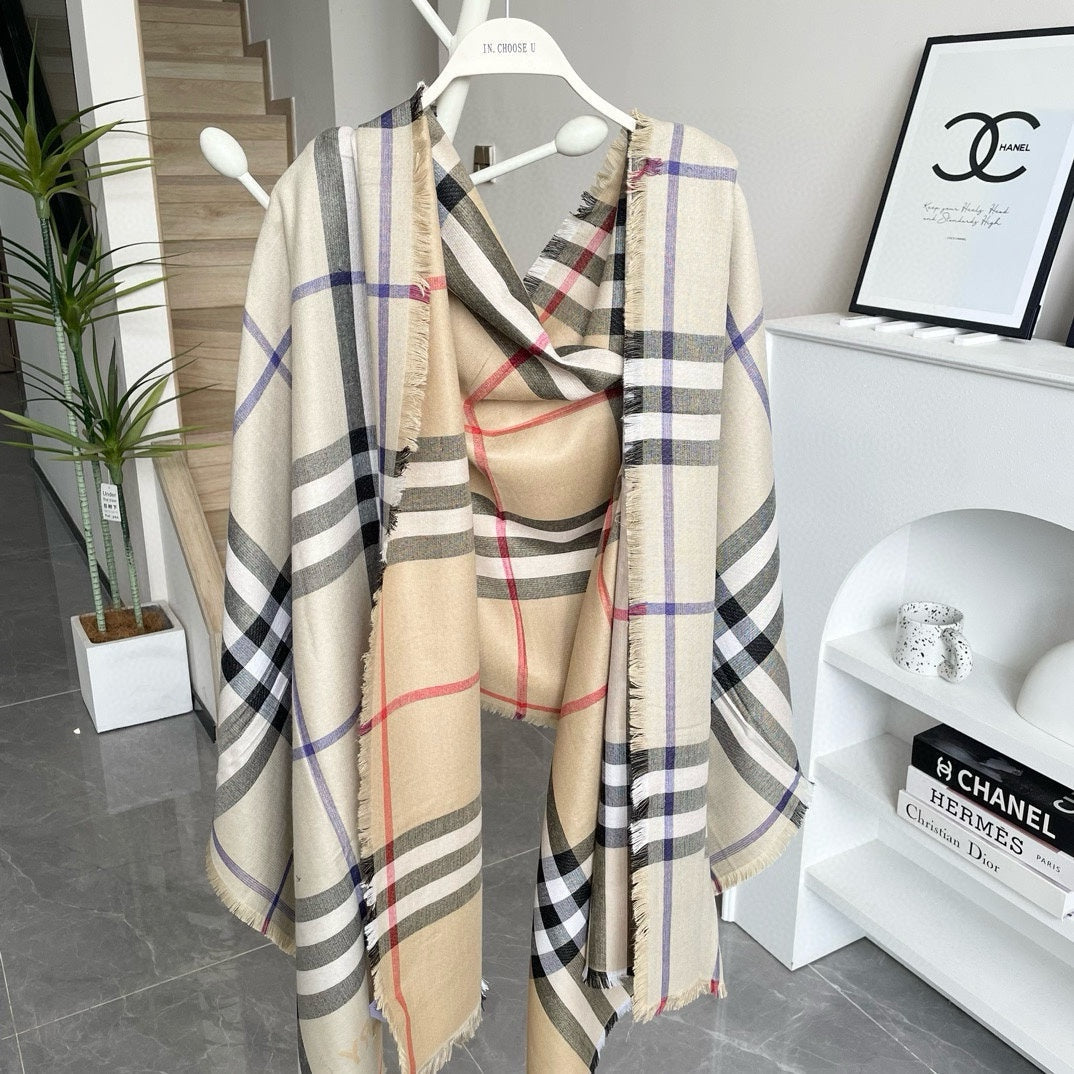 REVERSIBLE CHECK CASHMERE CAPE BLACK AND LIGHT GRAY 410135