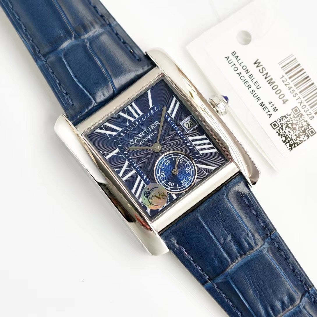 TANK SOLO SILVER CASE BLACK CALFSKIN LEATHER