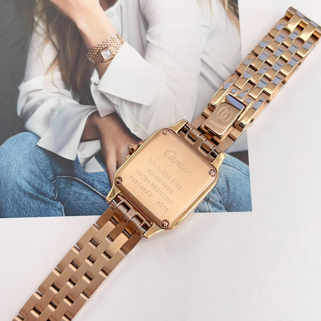 PANTHERE 27MM PINK GOLD CASE DIAMOND BEZEL WHITE DIAL