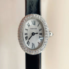 Baignoire Silver Diamond Case Black Leather Strap
