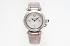 pasha 30mm quartz stainless steel pink dial light brown leather