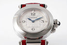 pasha 30mm quartz stainless steel white dial red leather