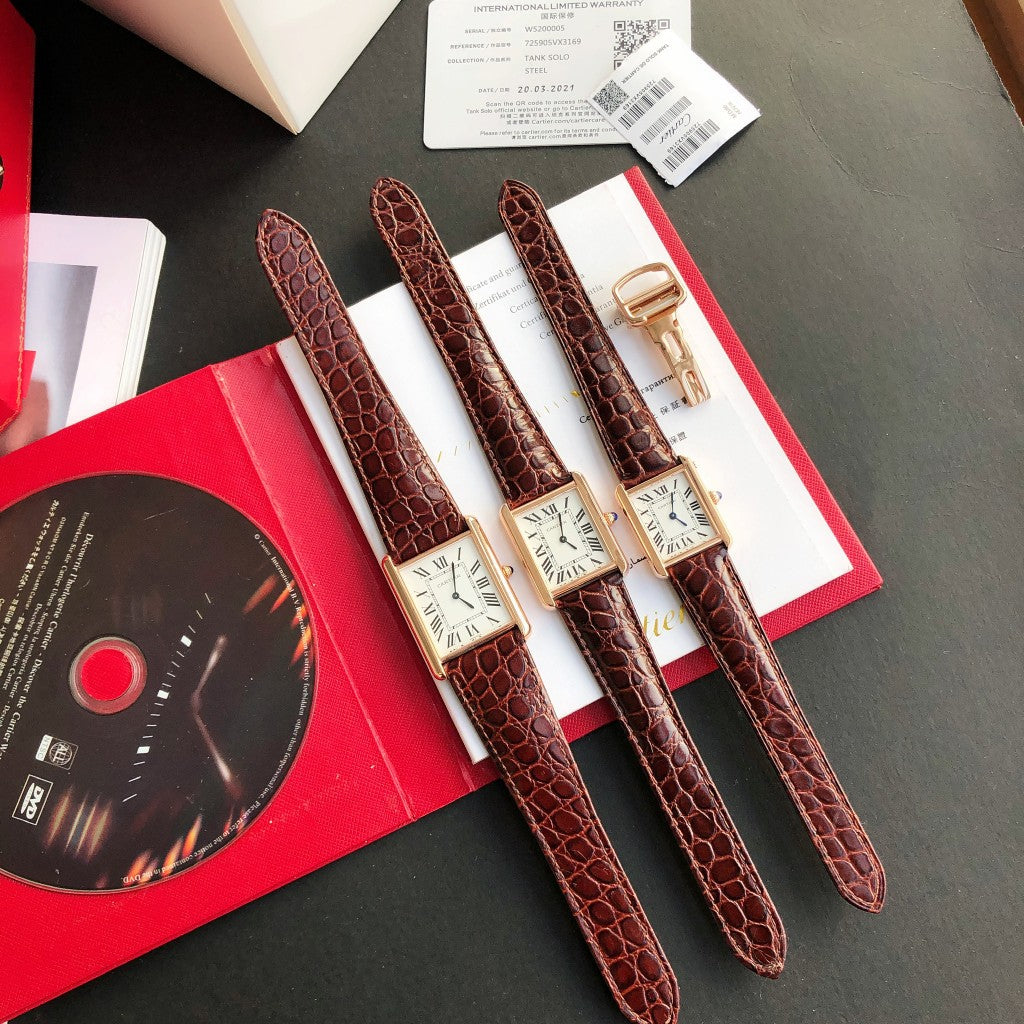 TANK SOLO QUARTZ PINK GOLD CASE BROWN LEATHER