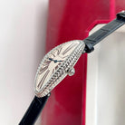 Vintage Baignoire 21mm Silver Diamond Case Black Leather
