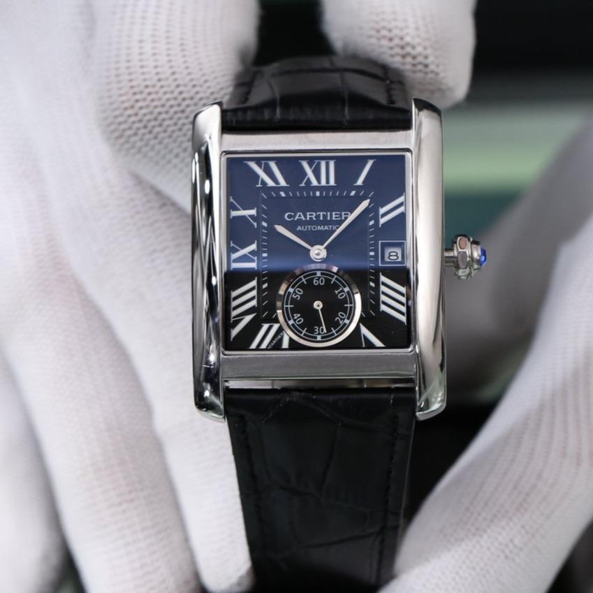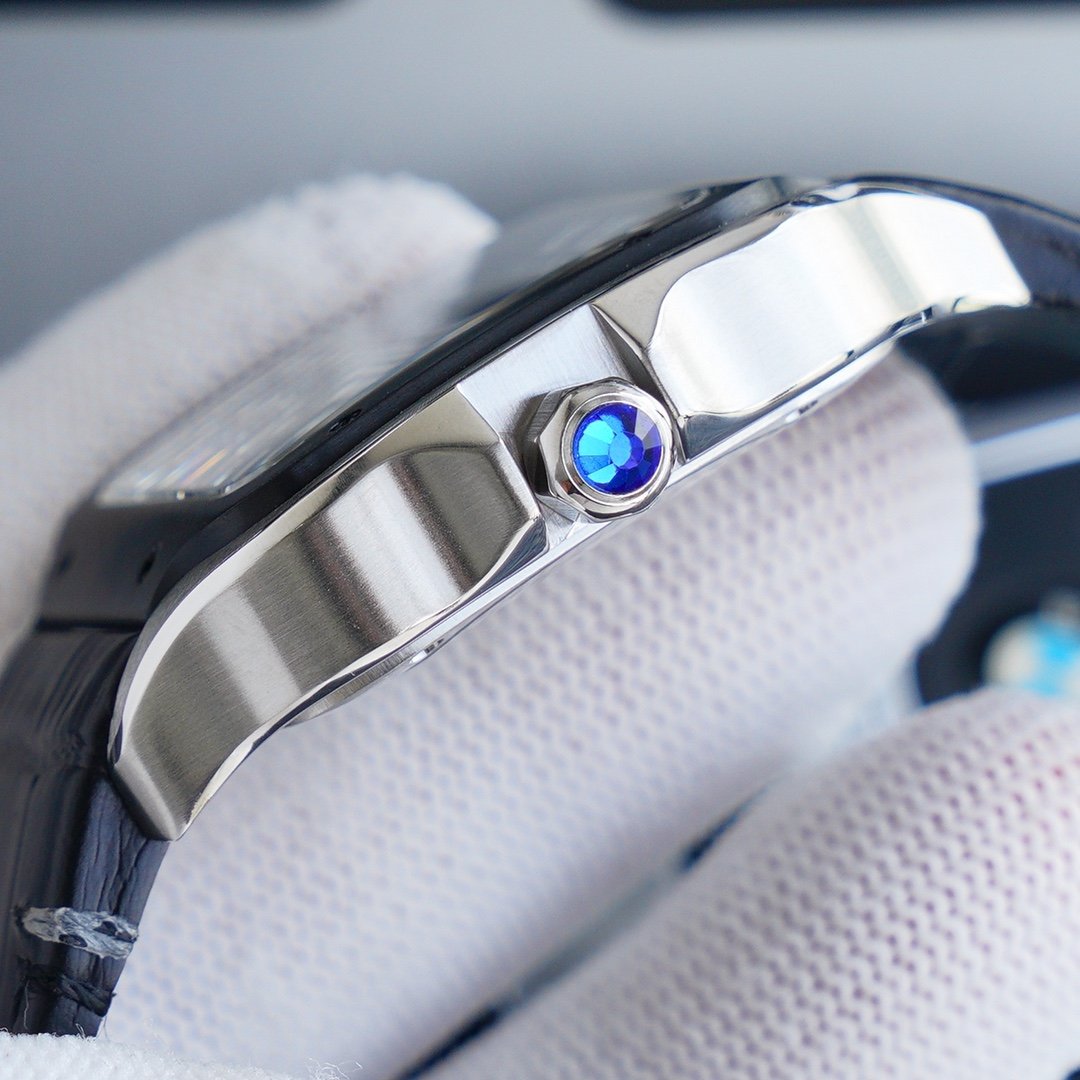 SANTOS 40MM BLACK CASE LEATHER STRAP
