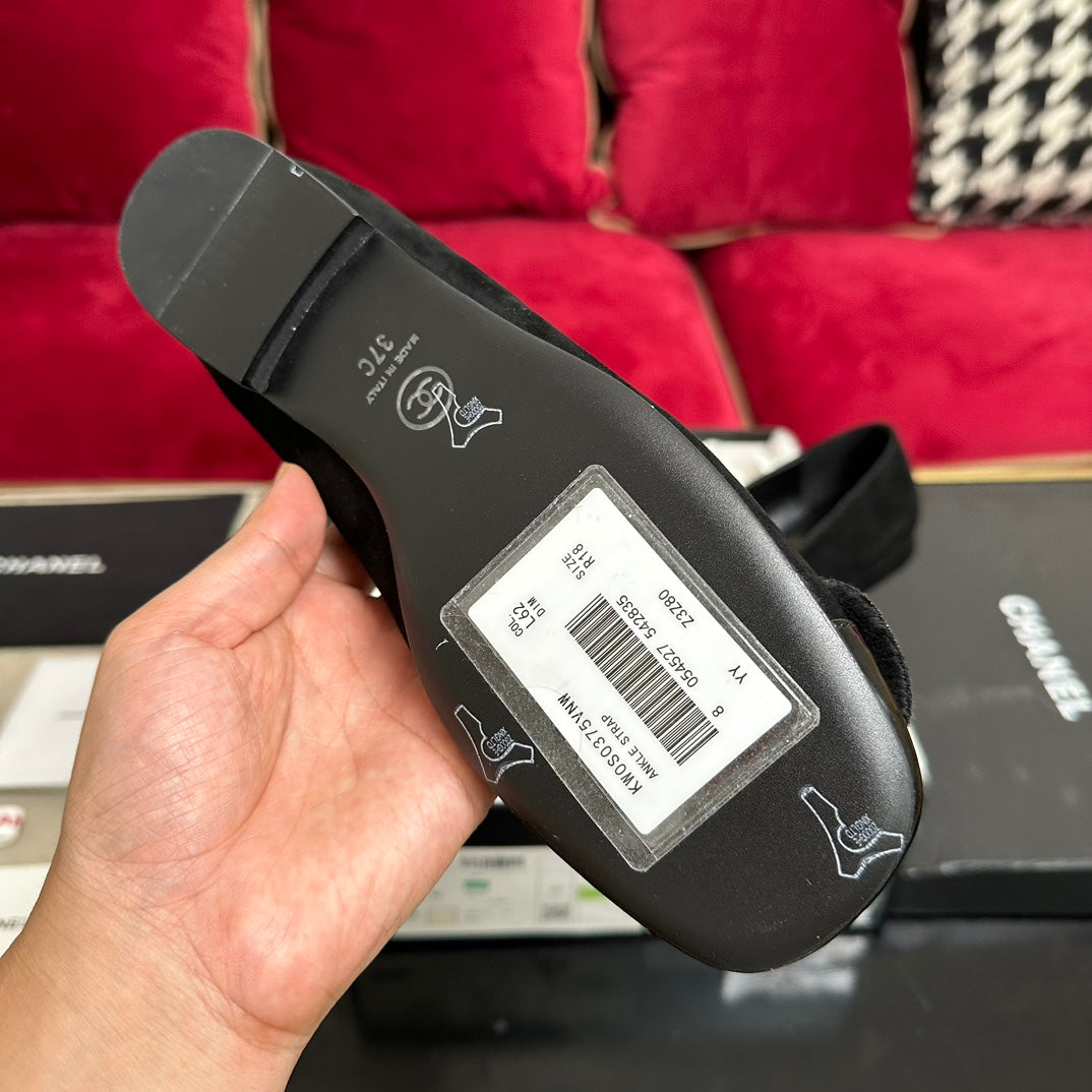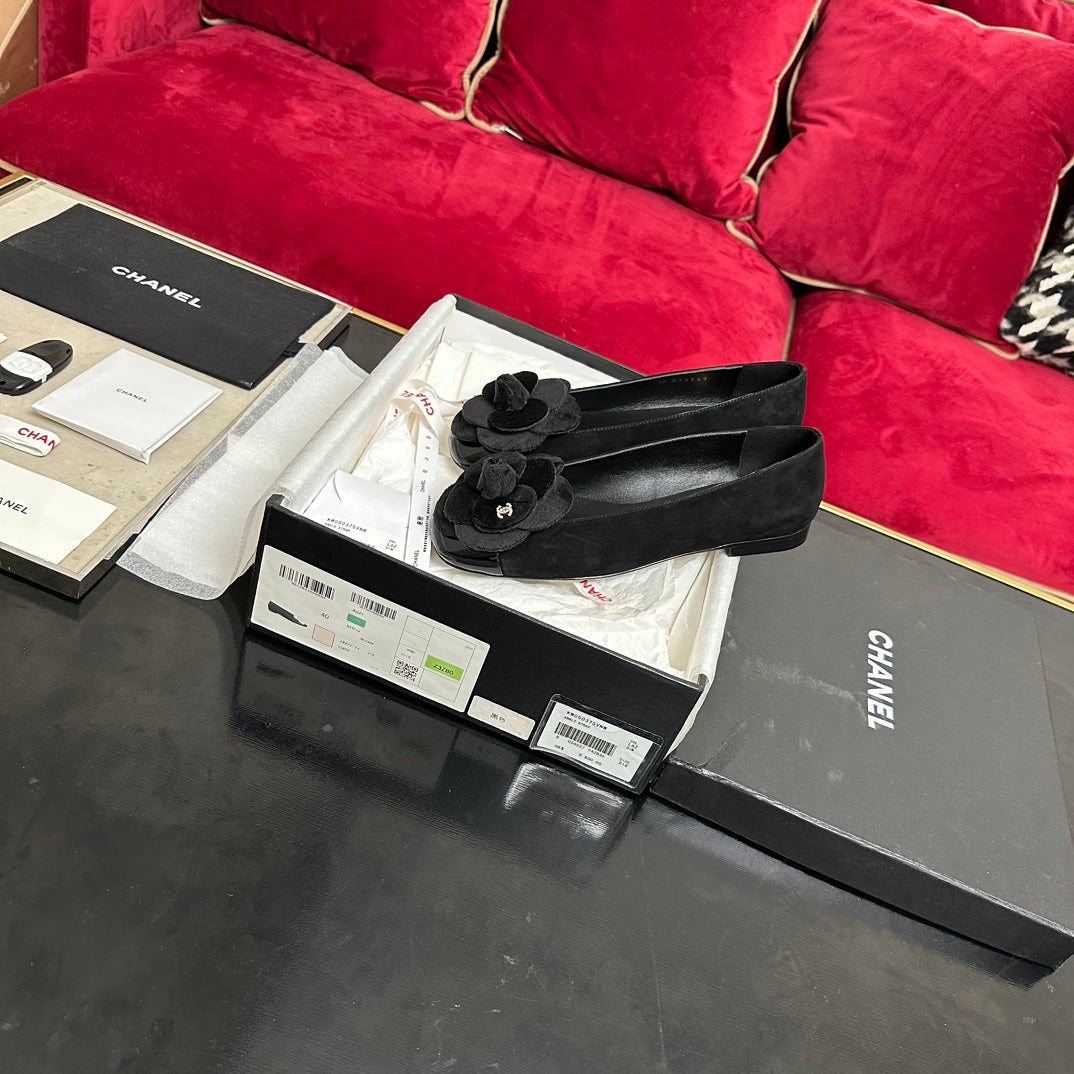 ballet flat flower all black suede