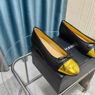 CC 25P Ballet Flat Black Calfskin Yellow Patent Calfskin