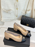 Chanel 25 Ballet Flat 50mm Beige Black Woven Lambskin 473050