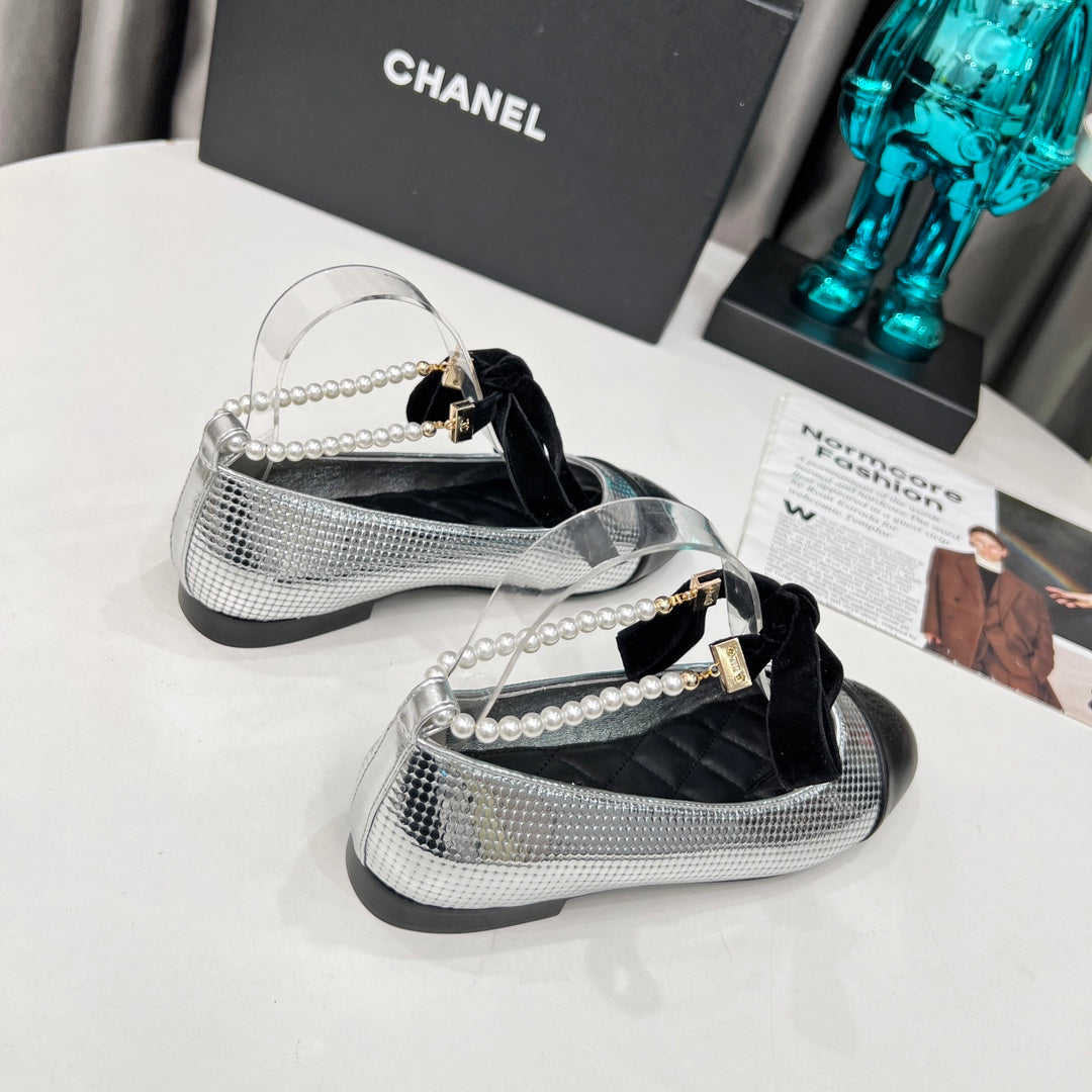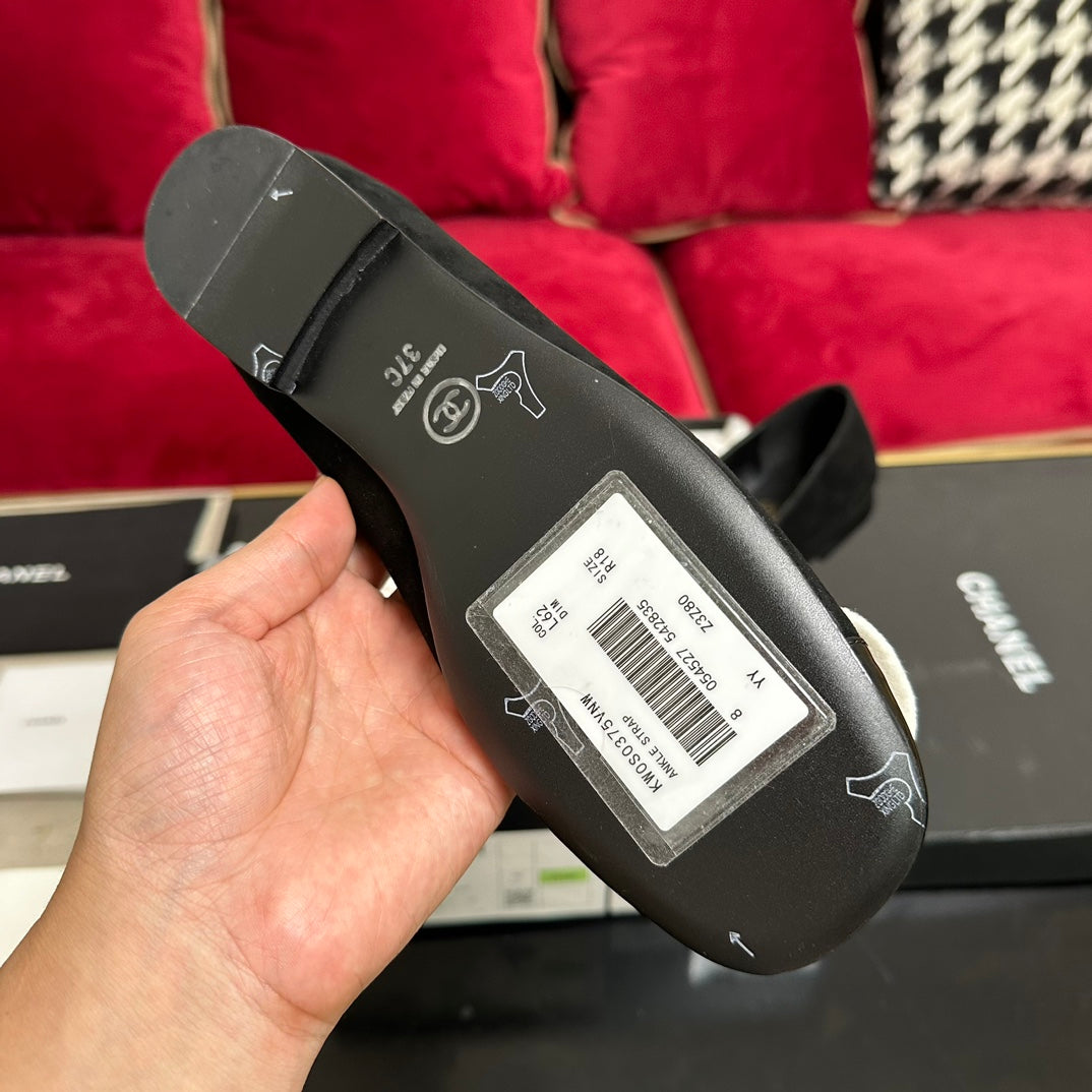 CC Mary Jane Black Studded With Pearls Lambskin And Cowhide
