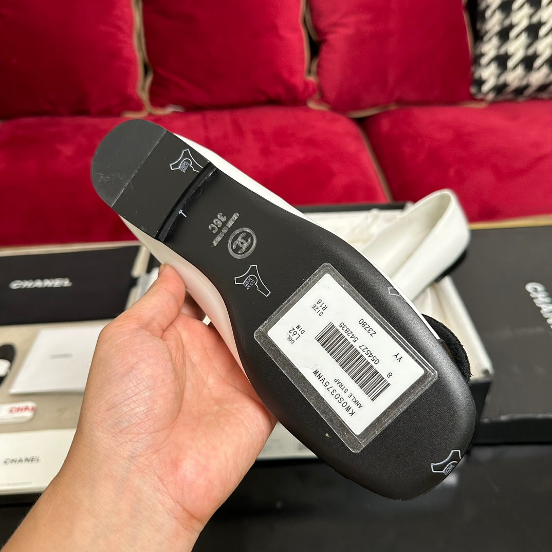 CC Mary Jane White Black Studded With Pearls Lambskin And Cowhide