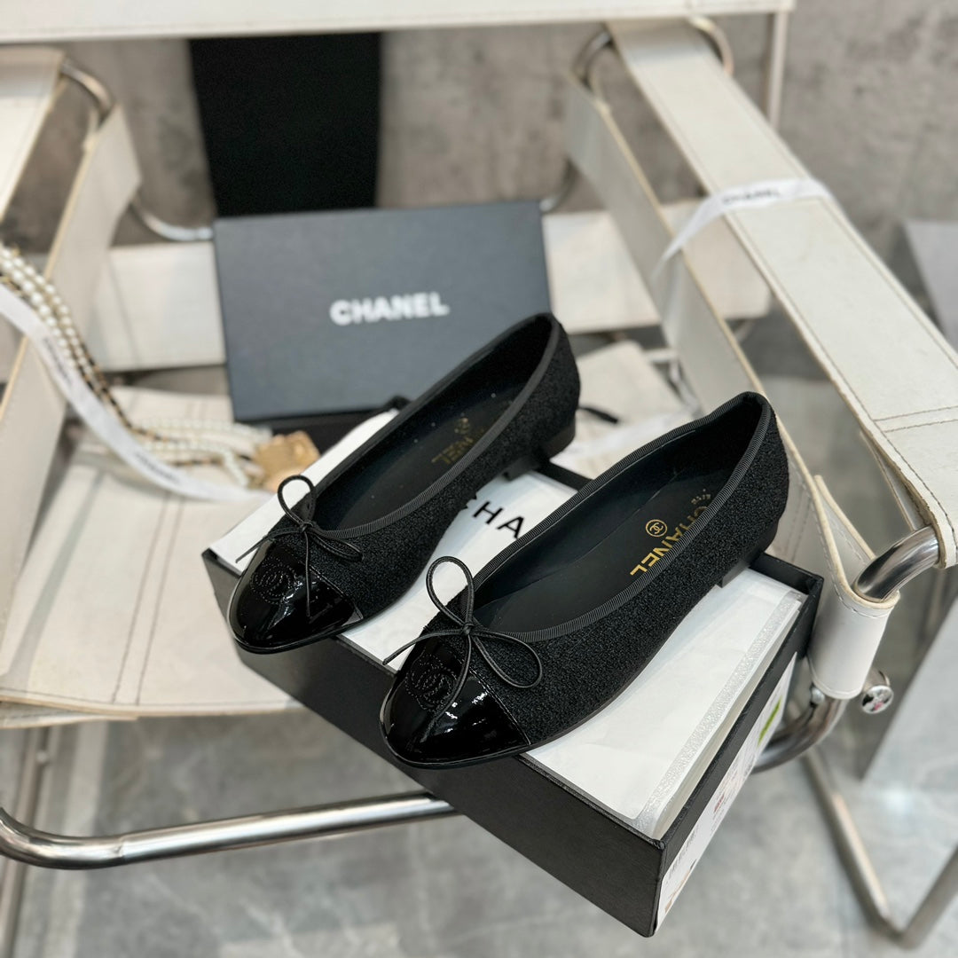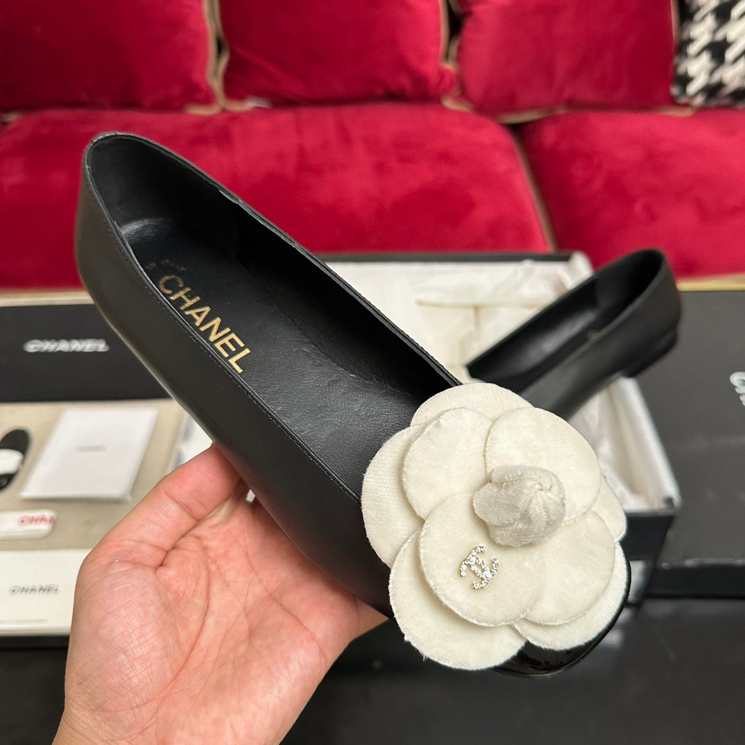 CC BALLET FLATS IN BLACK LAMBSKIN WITH GOLD HARDWARE