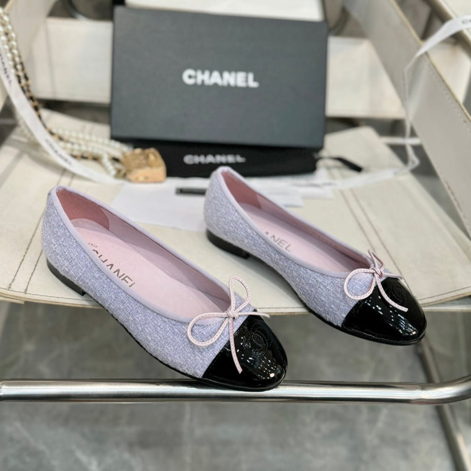 BALLET FLAT WHITE CALFSKIN AND FABRIC