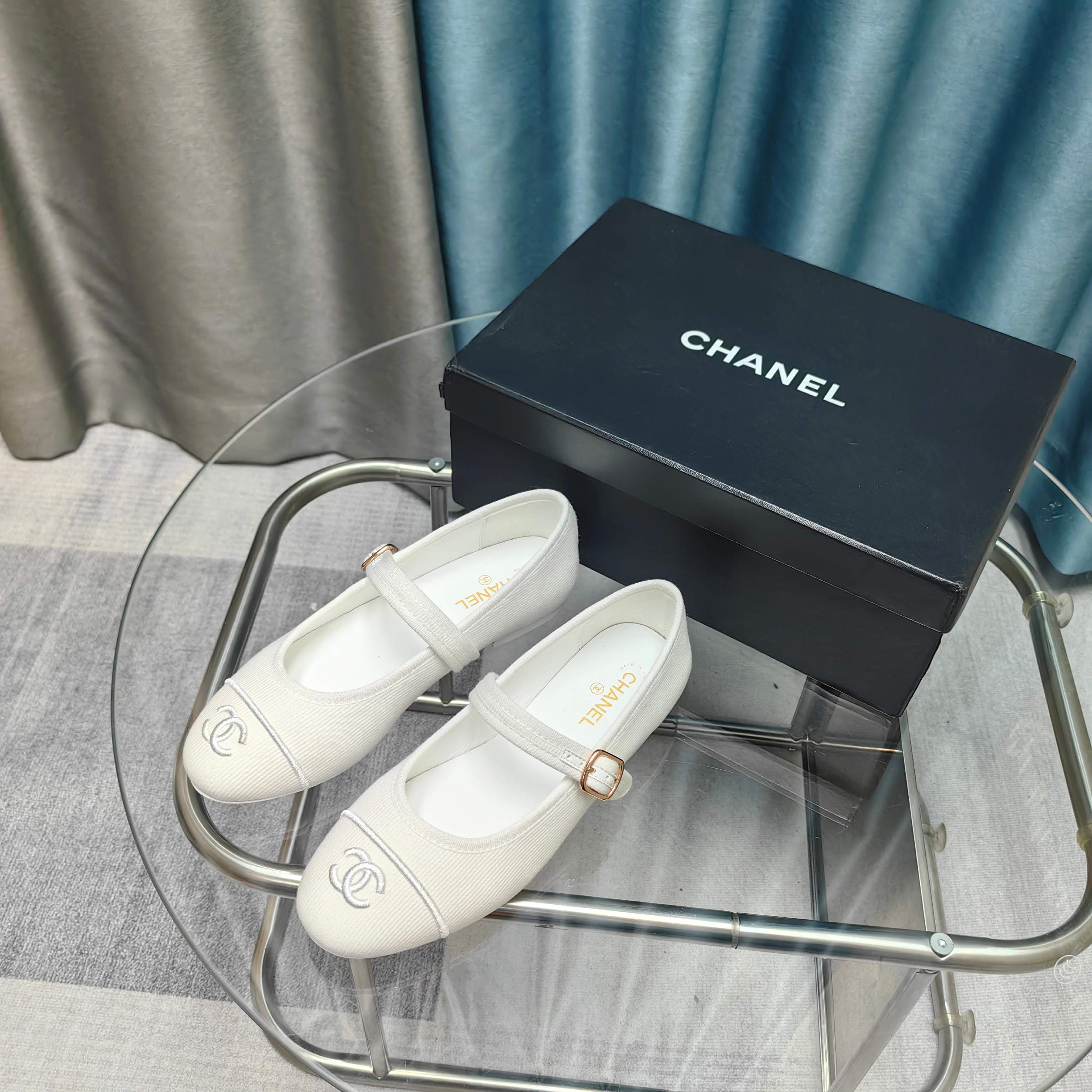 CC 25P Ballet Flat White Beige Quilted Calfskin