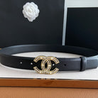 CC BELT 30MM BUCKLE GOLD PEARL DIAMOND LEATHER BLACK