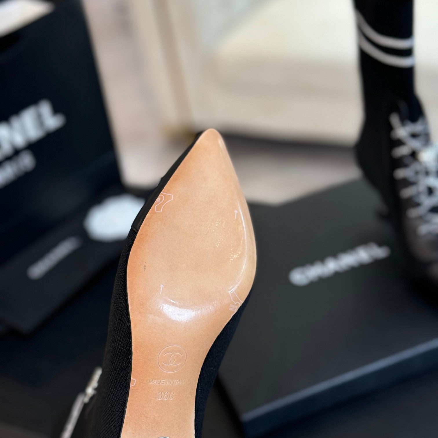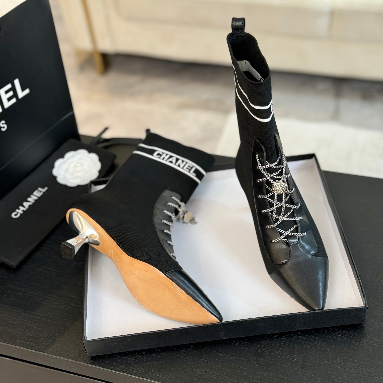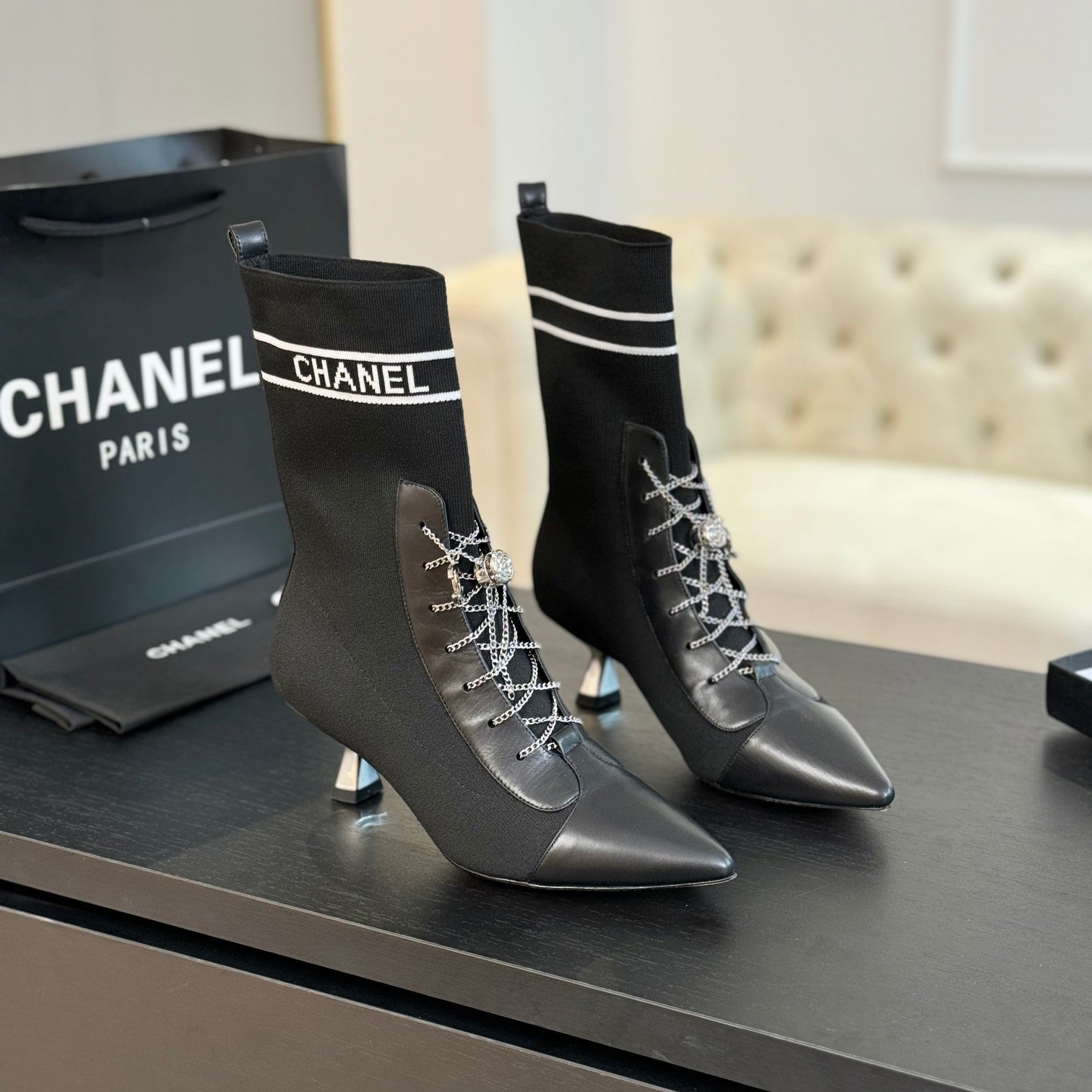 CC Ankle Boots Black Chain Wool And Lambskin