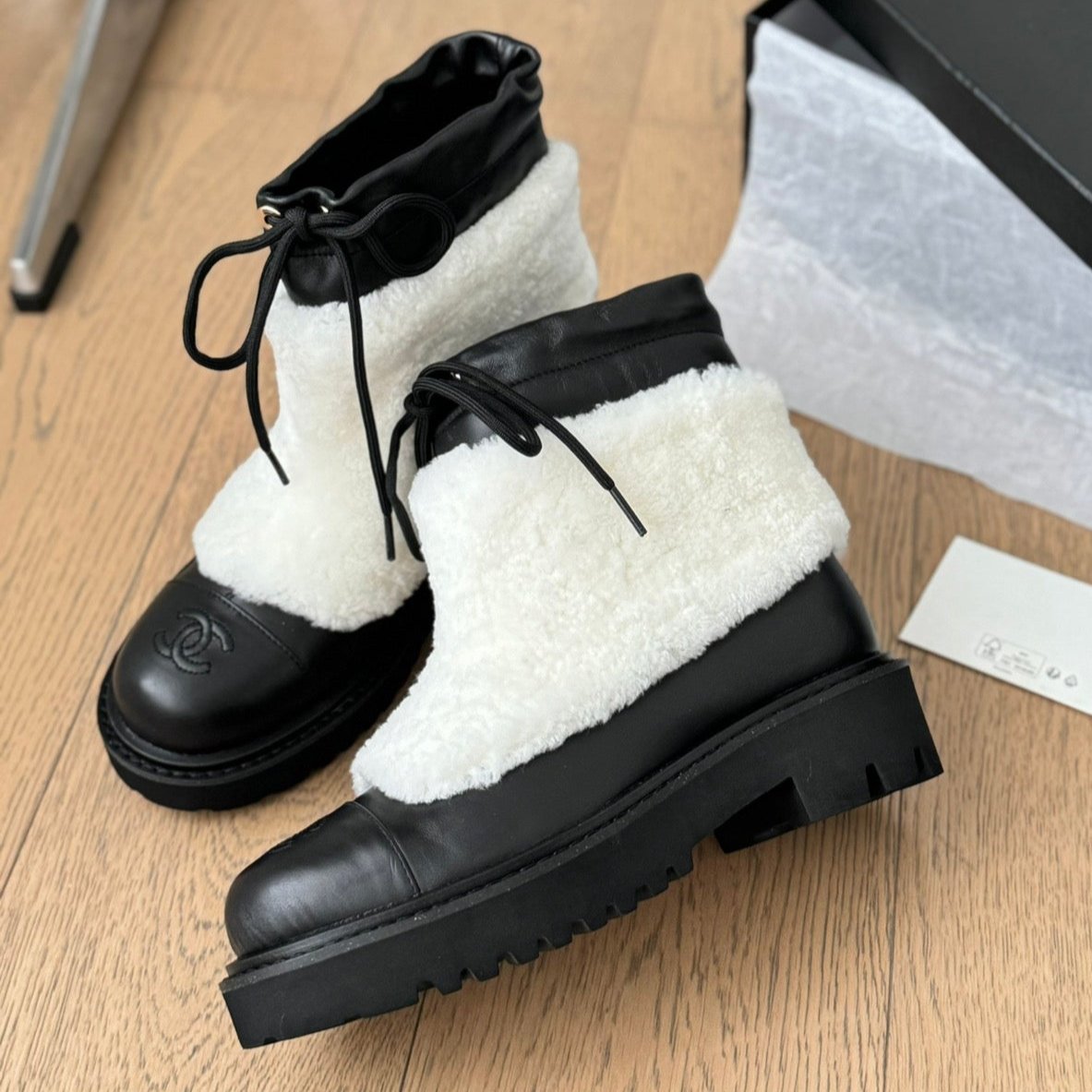 CC Ankle Boots Black Mix White Calfskin And Fleece