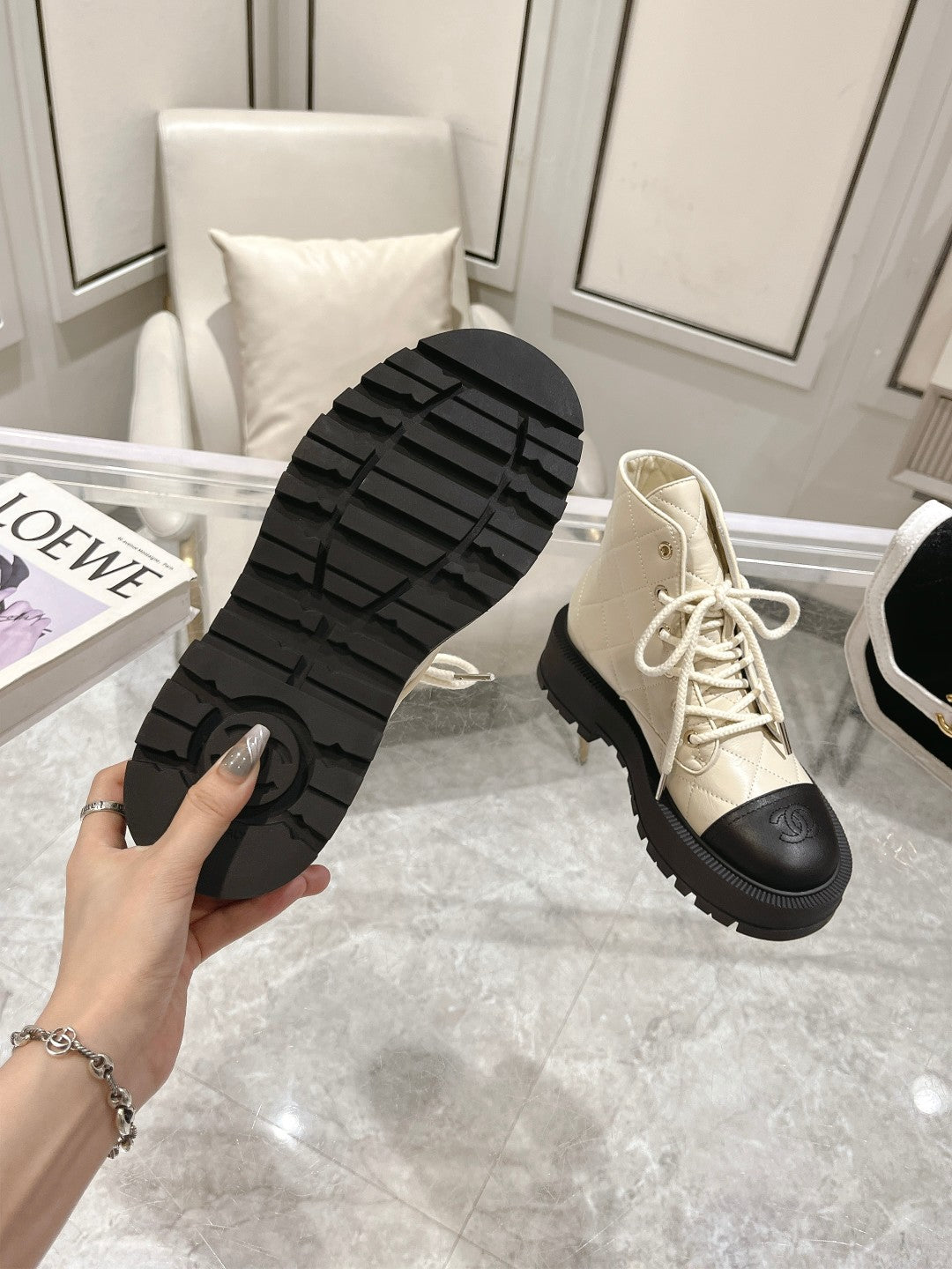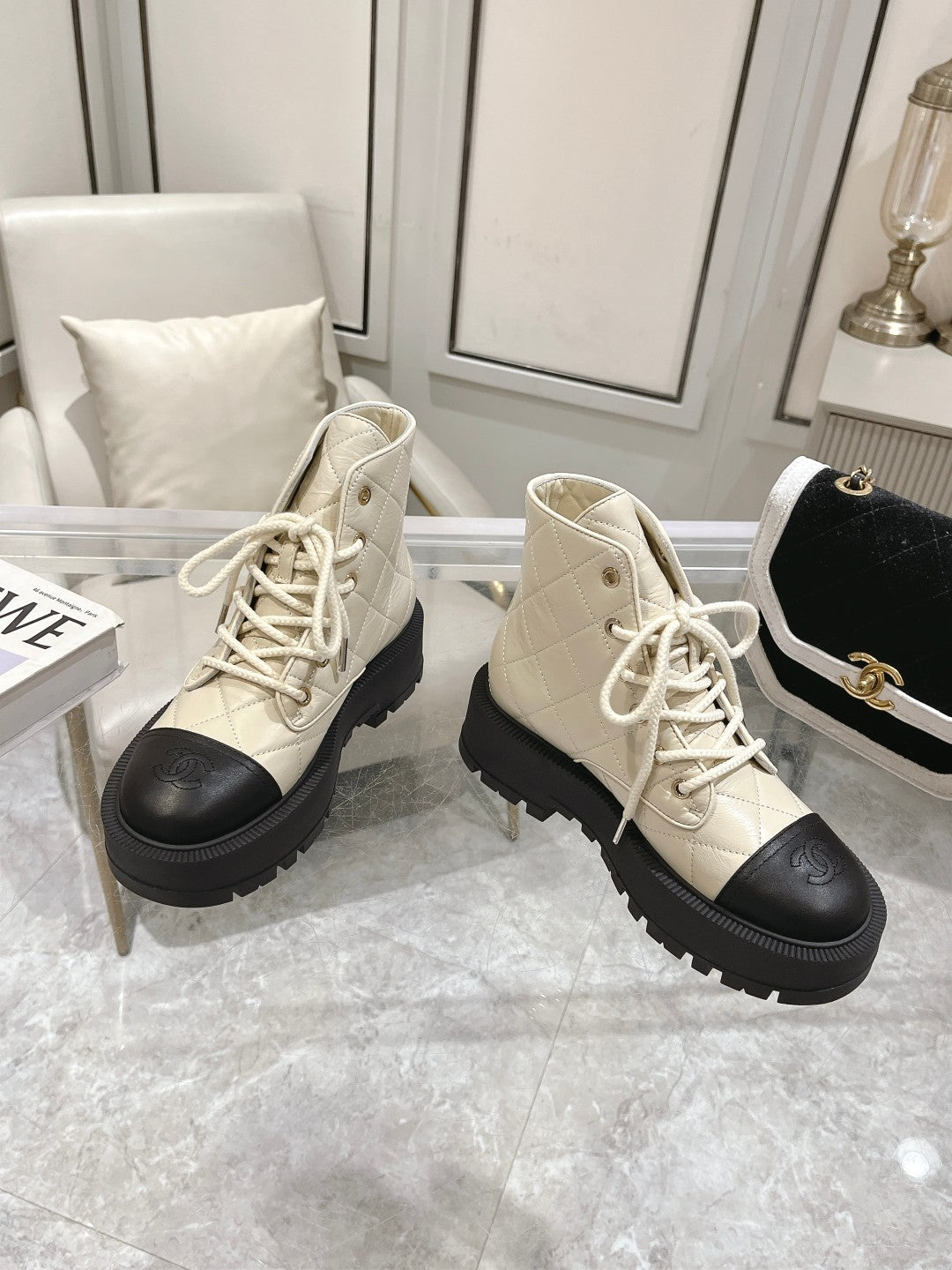 CC Combat Boots 50mm In Ivory White Mix Black Quilted Cowhide And Lambskin 944662