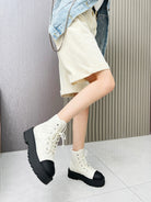 CC Combat Boots In White Mix Black Quilted Lambskin 944577