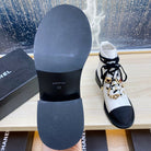 CC COMBAT BOOTS IN WHITE WRINKLED CALFSKIN AND BLACK GROSGRAIN WITH FAUX PEARL