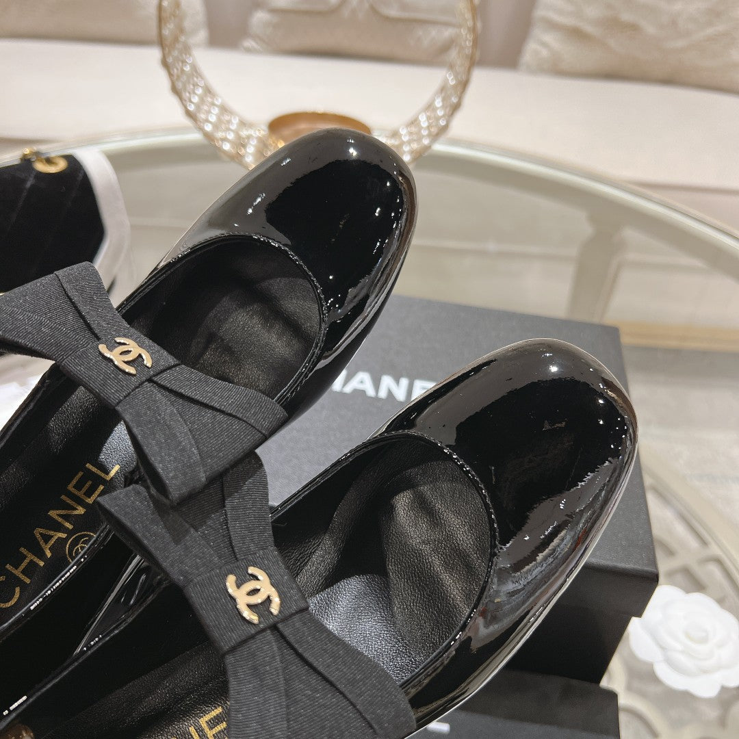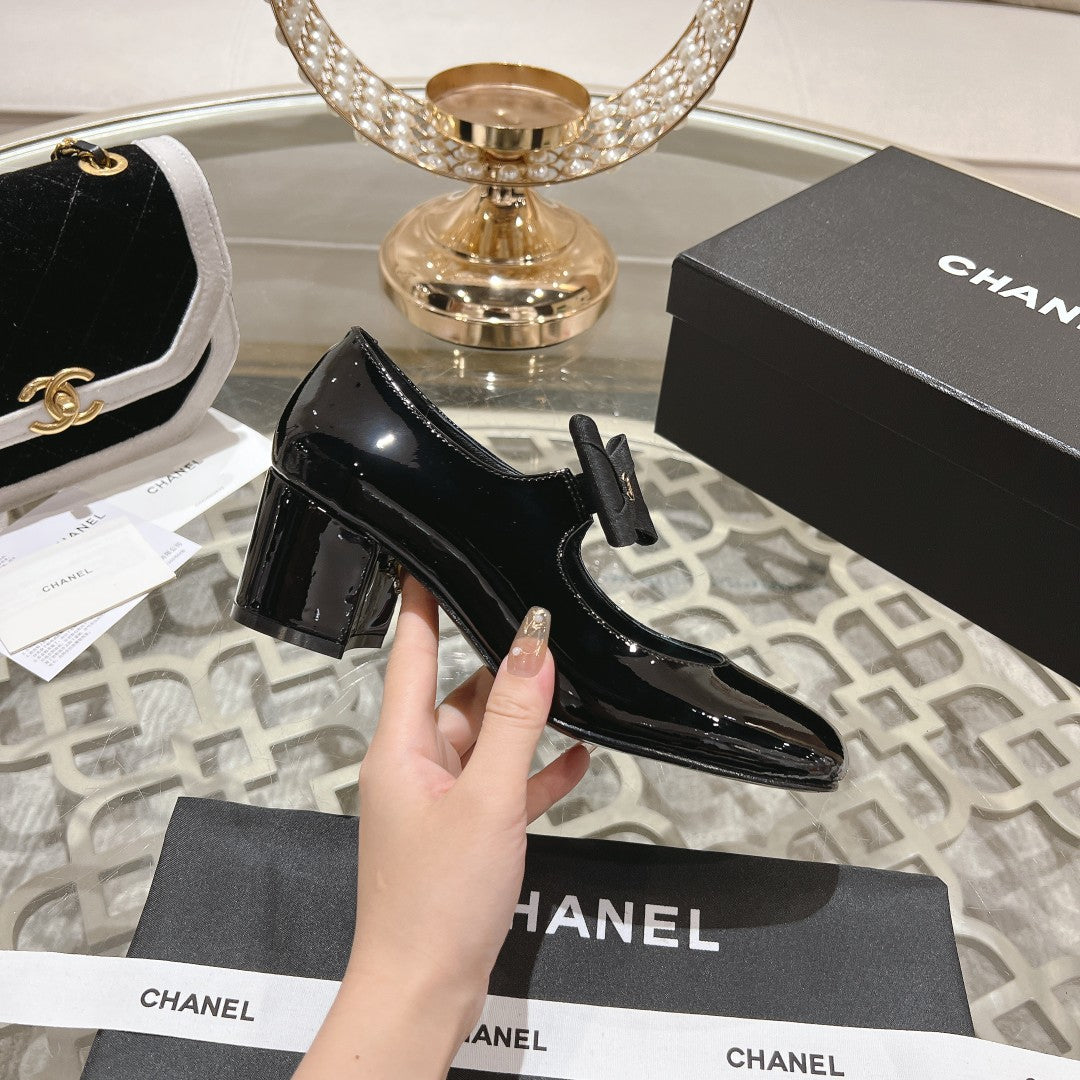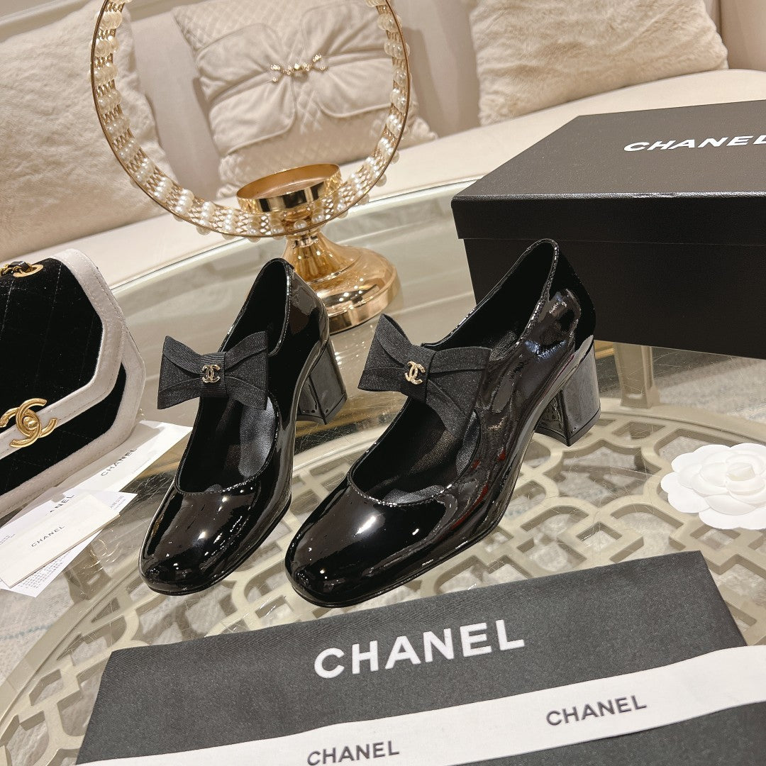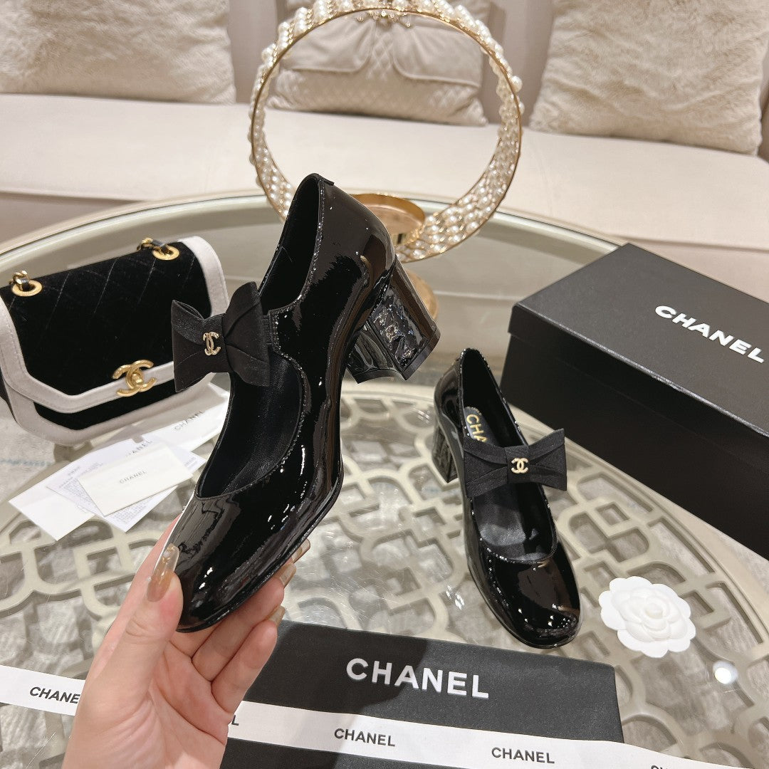 CC High Mary Janes 55mm Black With Bow Glossy Calfskin 943290