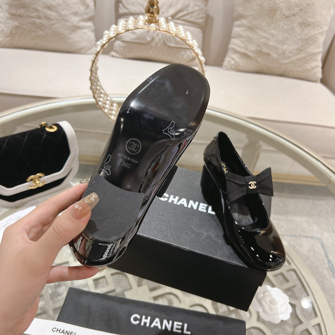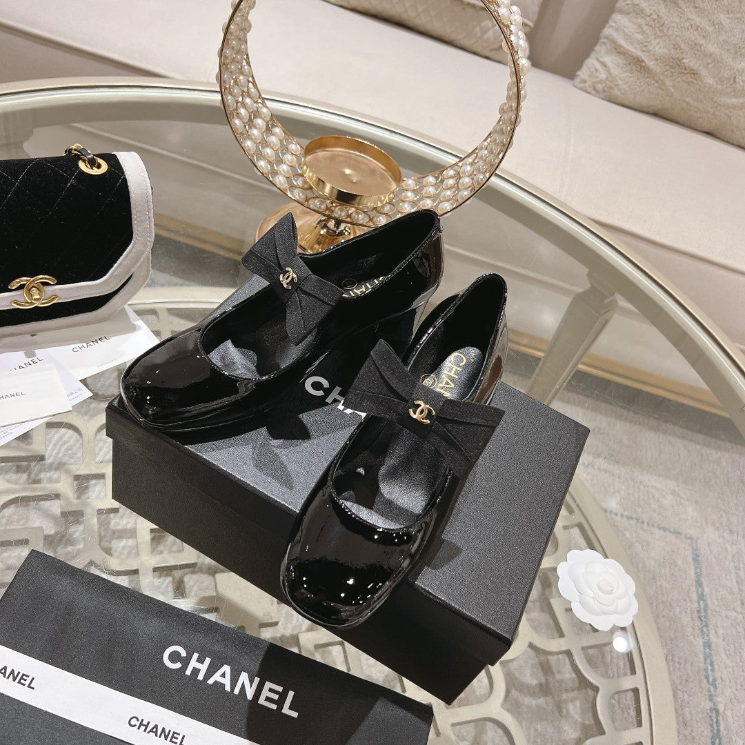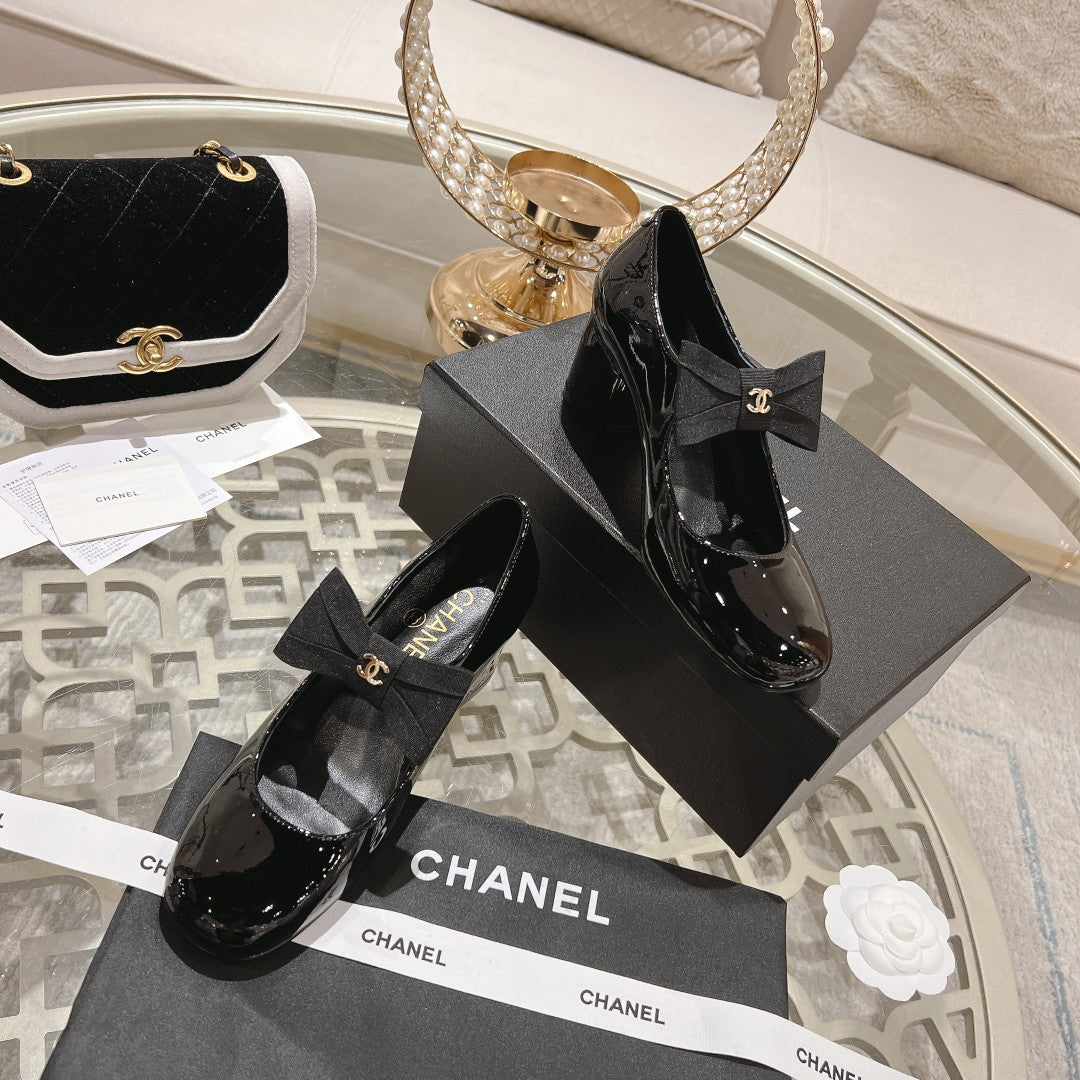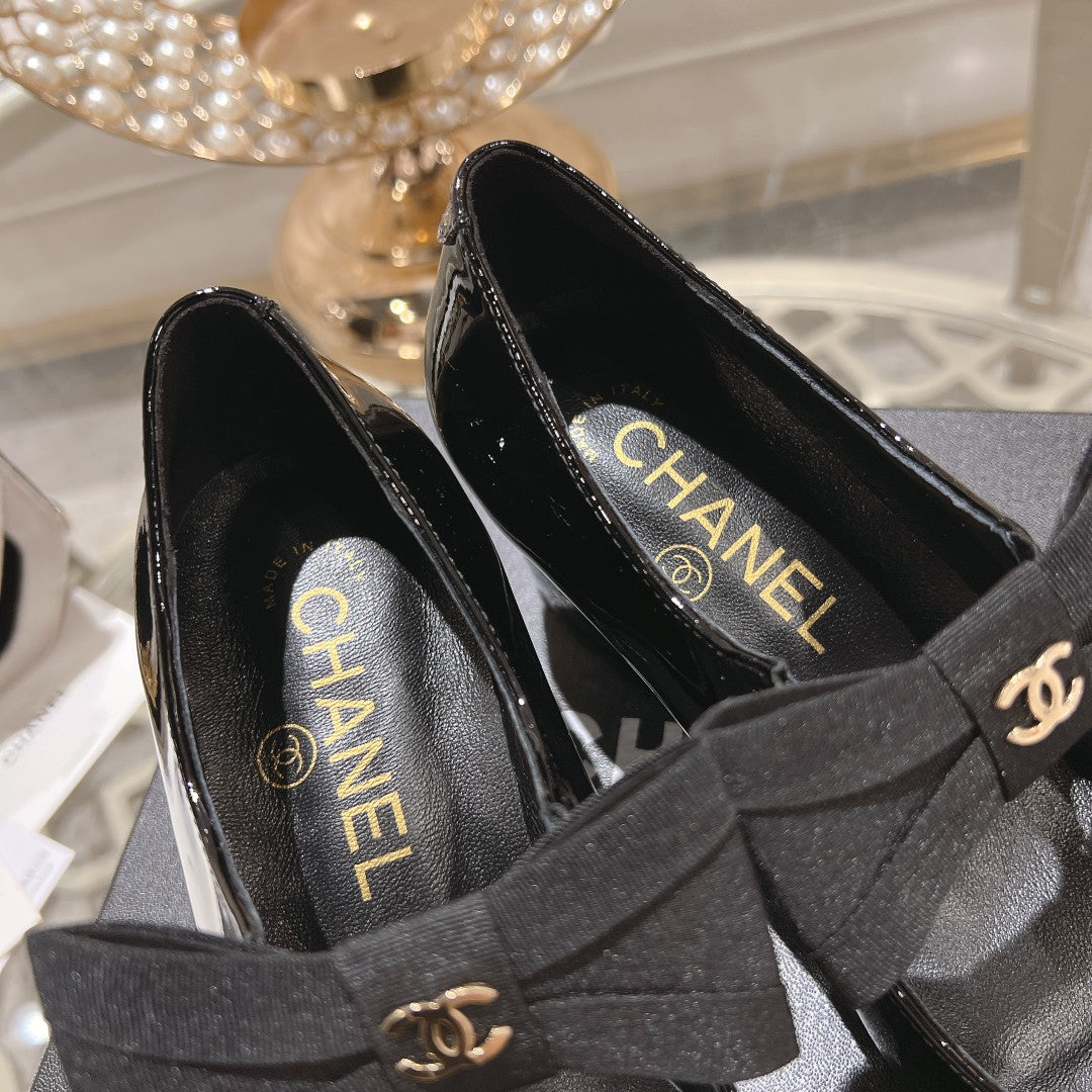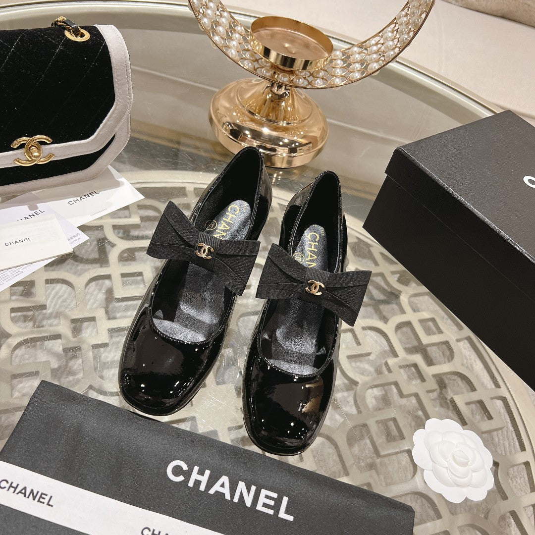 CC High Mary Janes 55mm Black With Bow Glossy Calfskin 943290