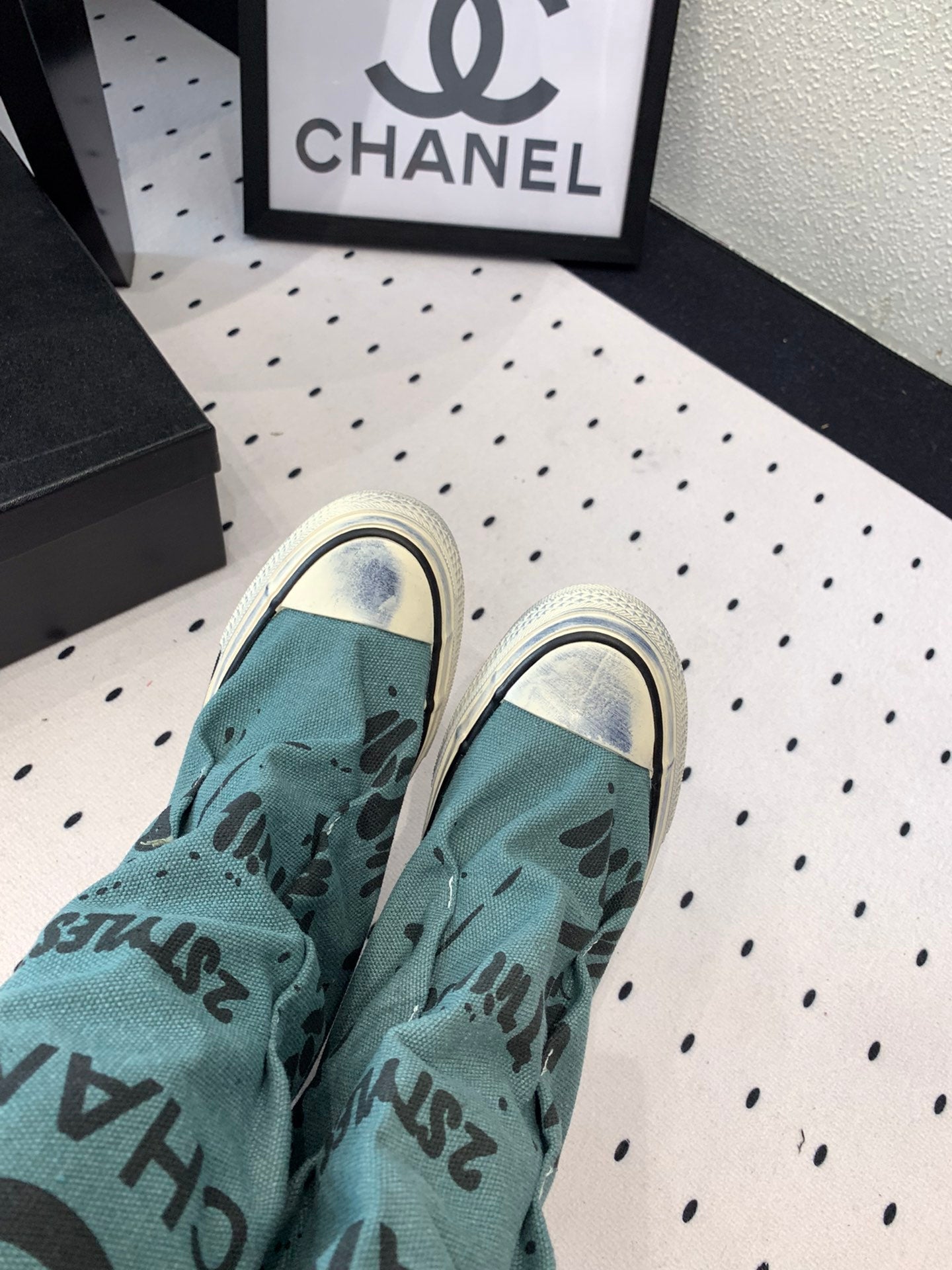 CC High-Top Canvas Boots Turquoise Black Denim Fabric 938047