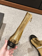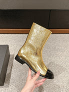 CC Short Boot Gold Metalic Lambskin Black Patent Calfskin