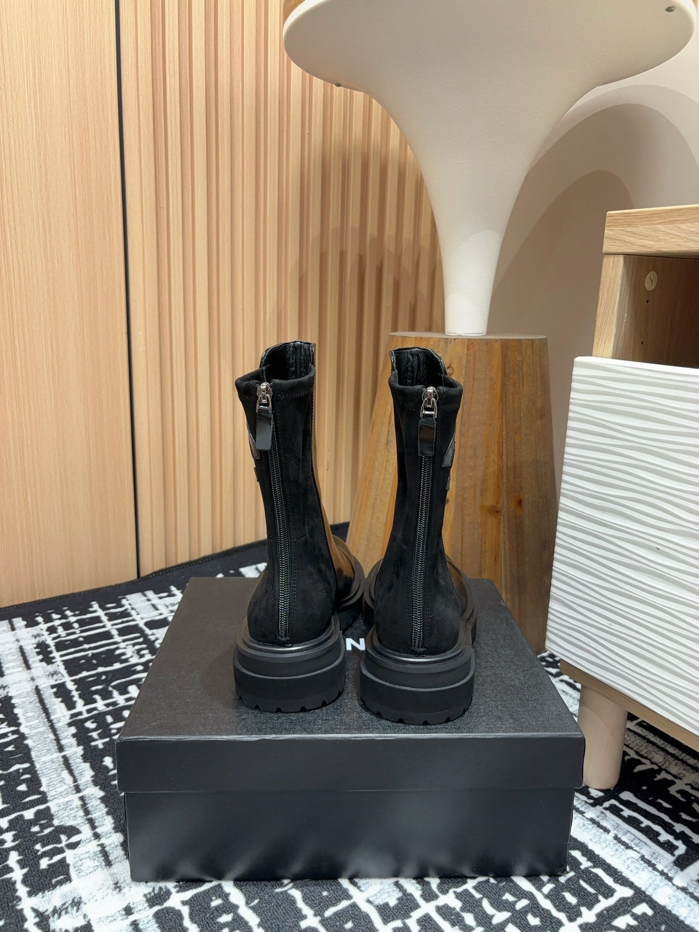 CC Short Boots 45mm Glossy Black Calfskin And Suede