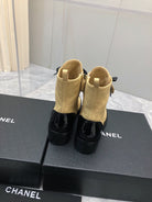 CC Short Boots 45mm In Light Yellow Mix Black Quilted Lambskin And Glossy Cowhide 950039