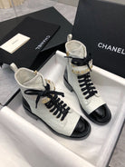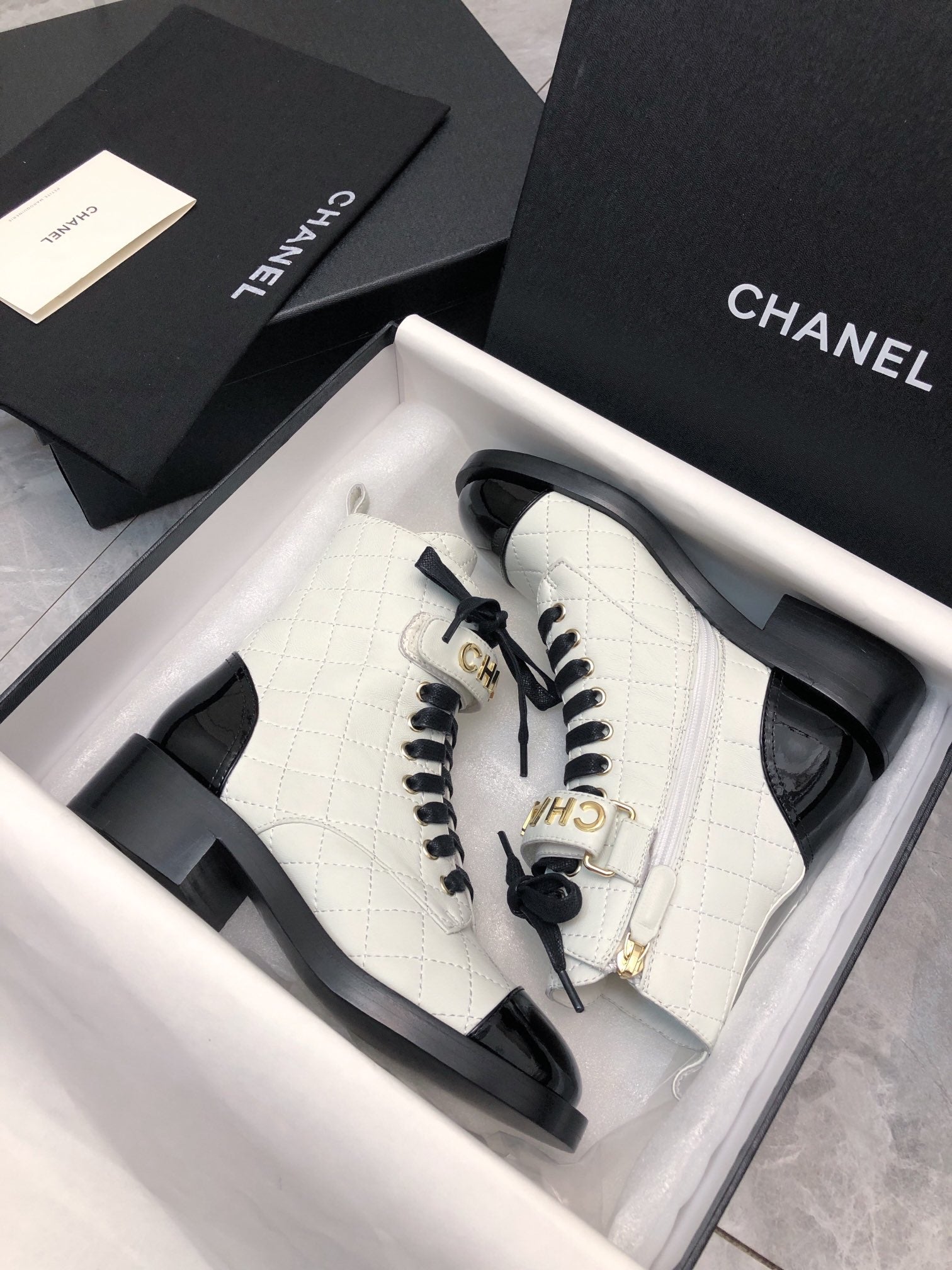 CC Short Boots 45mm In White Mix Black Quilted Lambskin And Glossy Cowhide 950036
